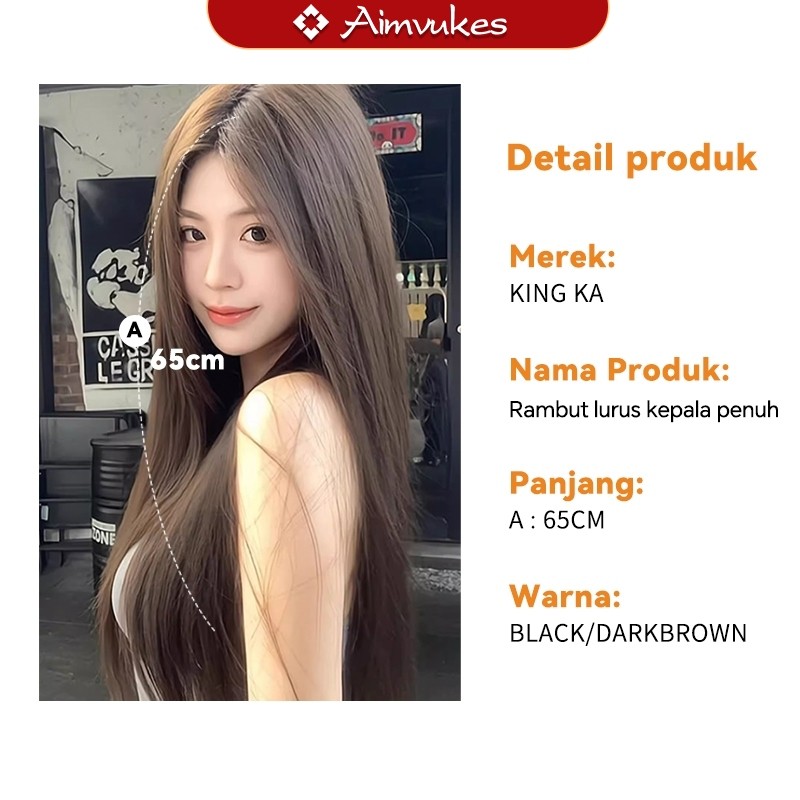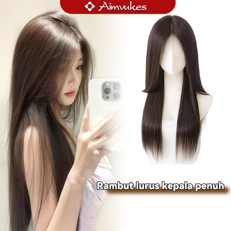 AIMVUKES---Full Wig Korean Long Straight Tanpa Poni Rambut Palsu Wanita Lurus Natural Wig Wanita 65 cm