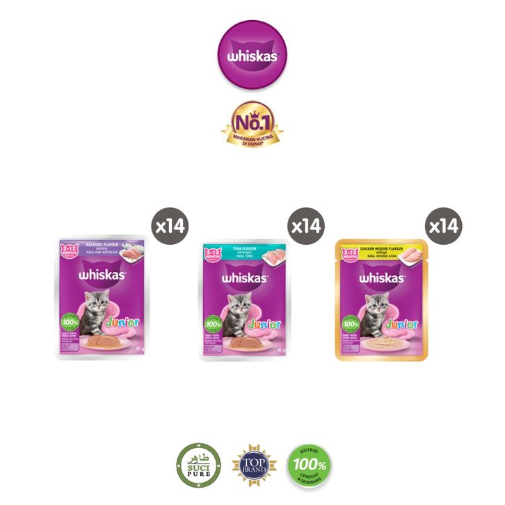 Whiskas Junior Makanan Anak Kucing Basah Pouch 80gr - Isi 14