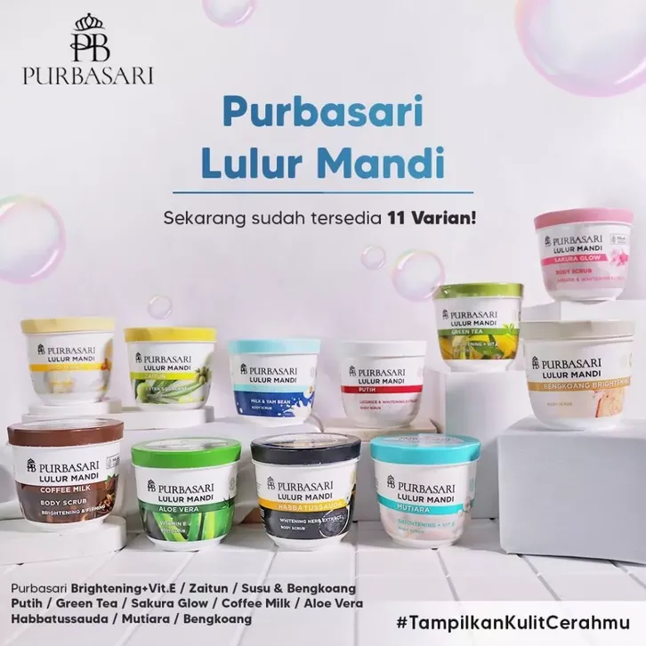 Green Tea, Susu+Bengkoang, Zaitun, Brightening + Vit E, Mutiara, Lulur Putih, Bengkoang Whitening