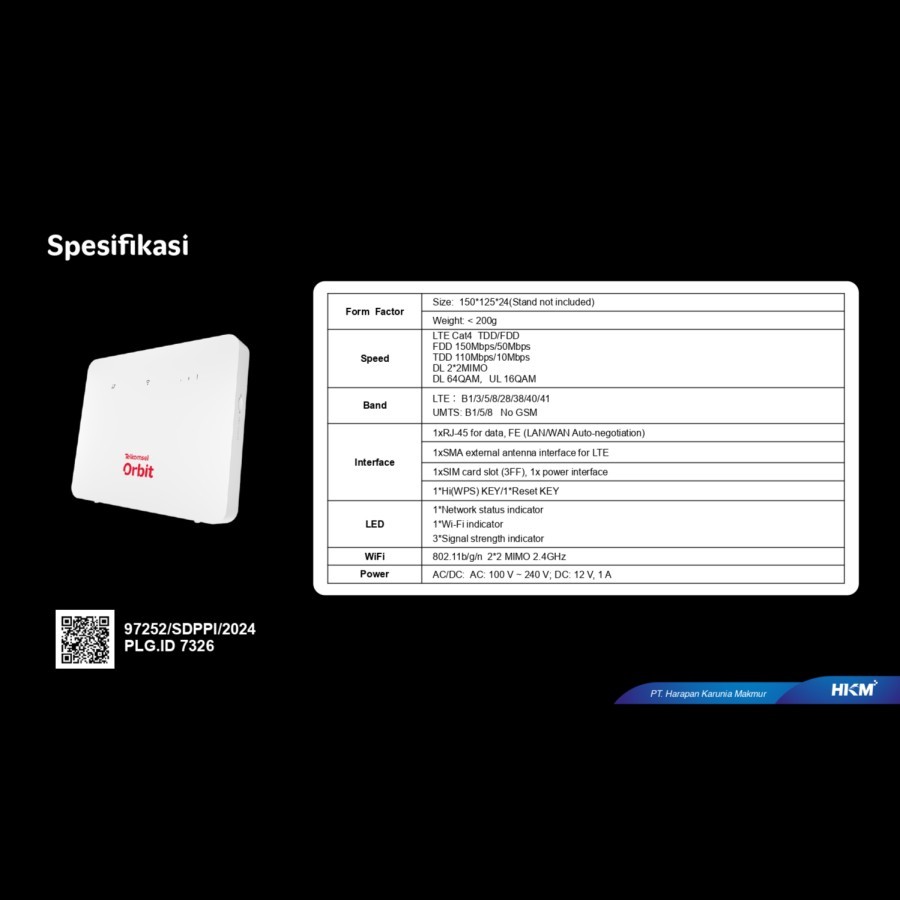Telkomsel Orbit Star H3 / Huawei B313 Modem Wifi Router Wireless - Free Kuota