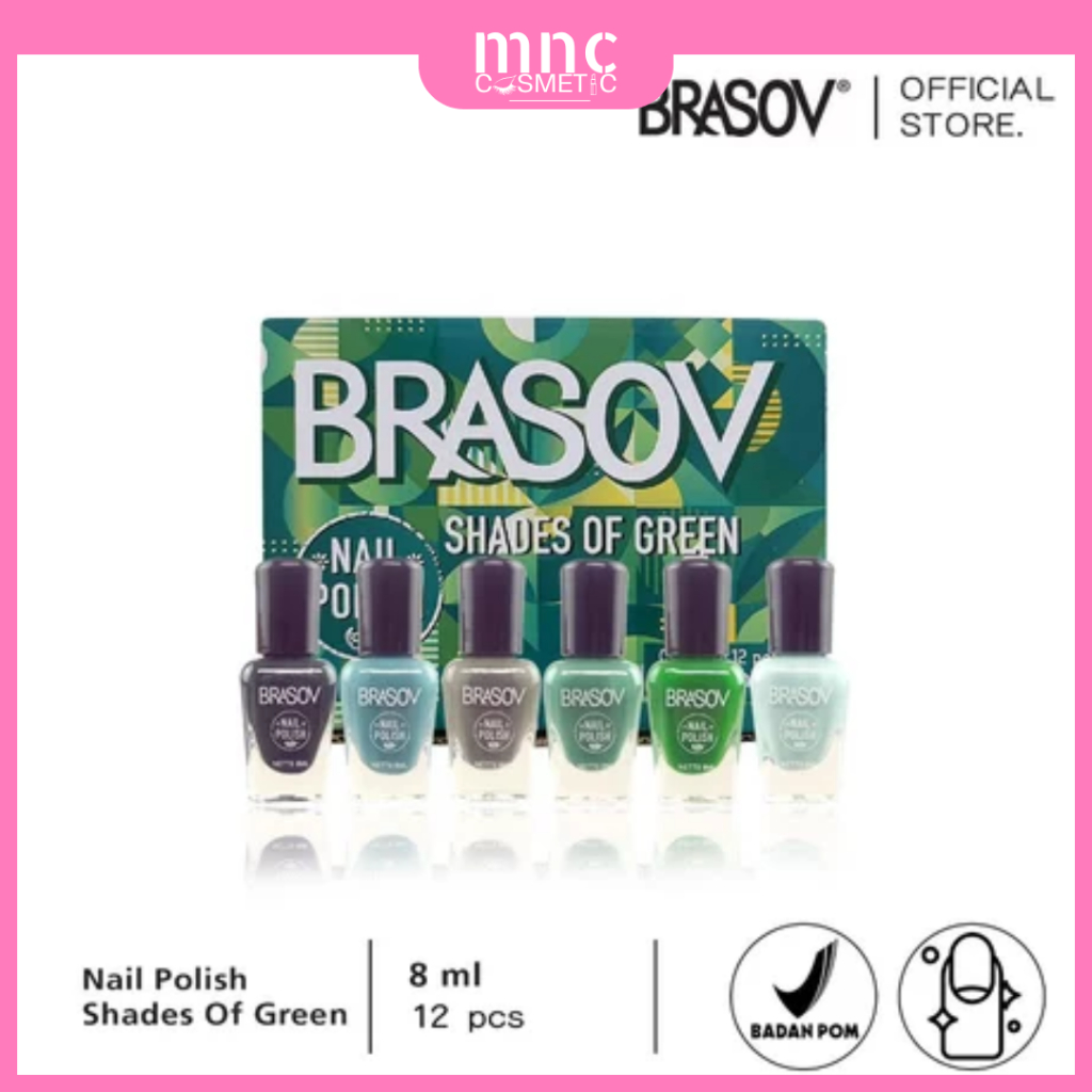 BRASOV Kutek Cat Kuku 12Pcs 8ml Shades Of Green Nail Polish BPOM