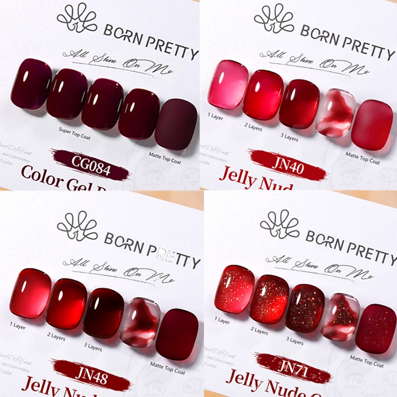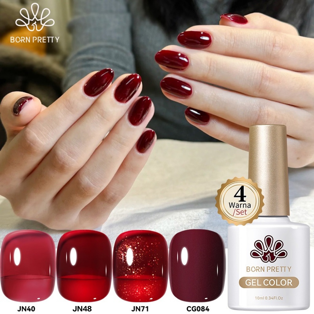 BORN PRETTY Red Gel Polish Set 4pcs Maroon Warna Kutek Gel UV Nail Polish Jelly Nail Gel Polish BPOM