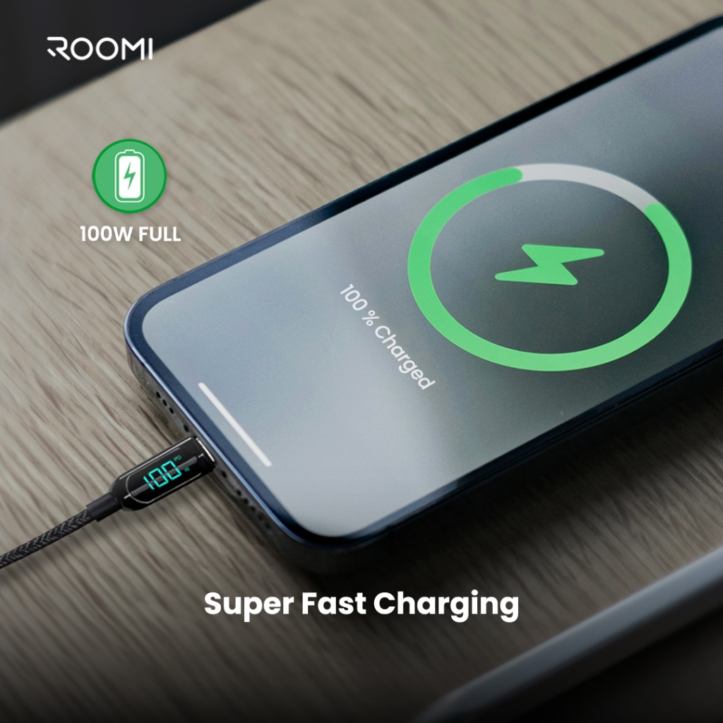 ROOMI Superfast Charging Cable Type C, Lightning, Data Cable