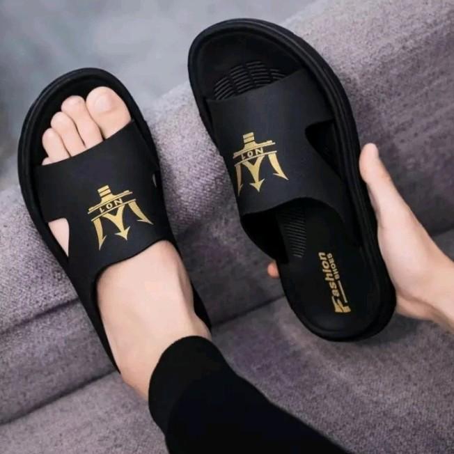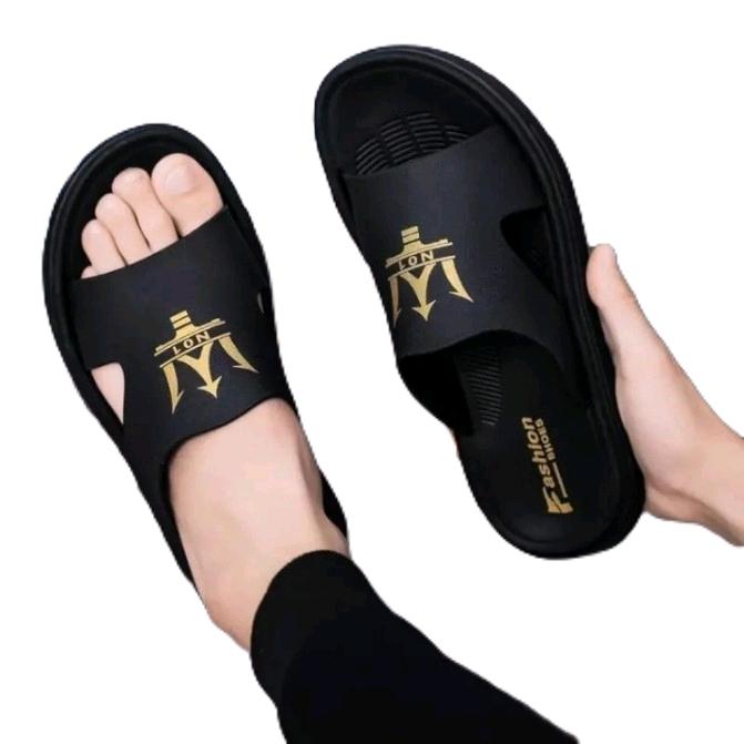 [Star]Sandal Selop Pria Dewasa Motif Terbaru 01 Bahan Sepon Ukuran 39-43 Karet Sandal Shoes Sendal - Hitam, 38