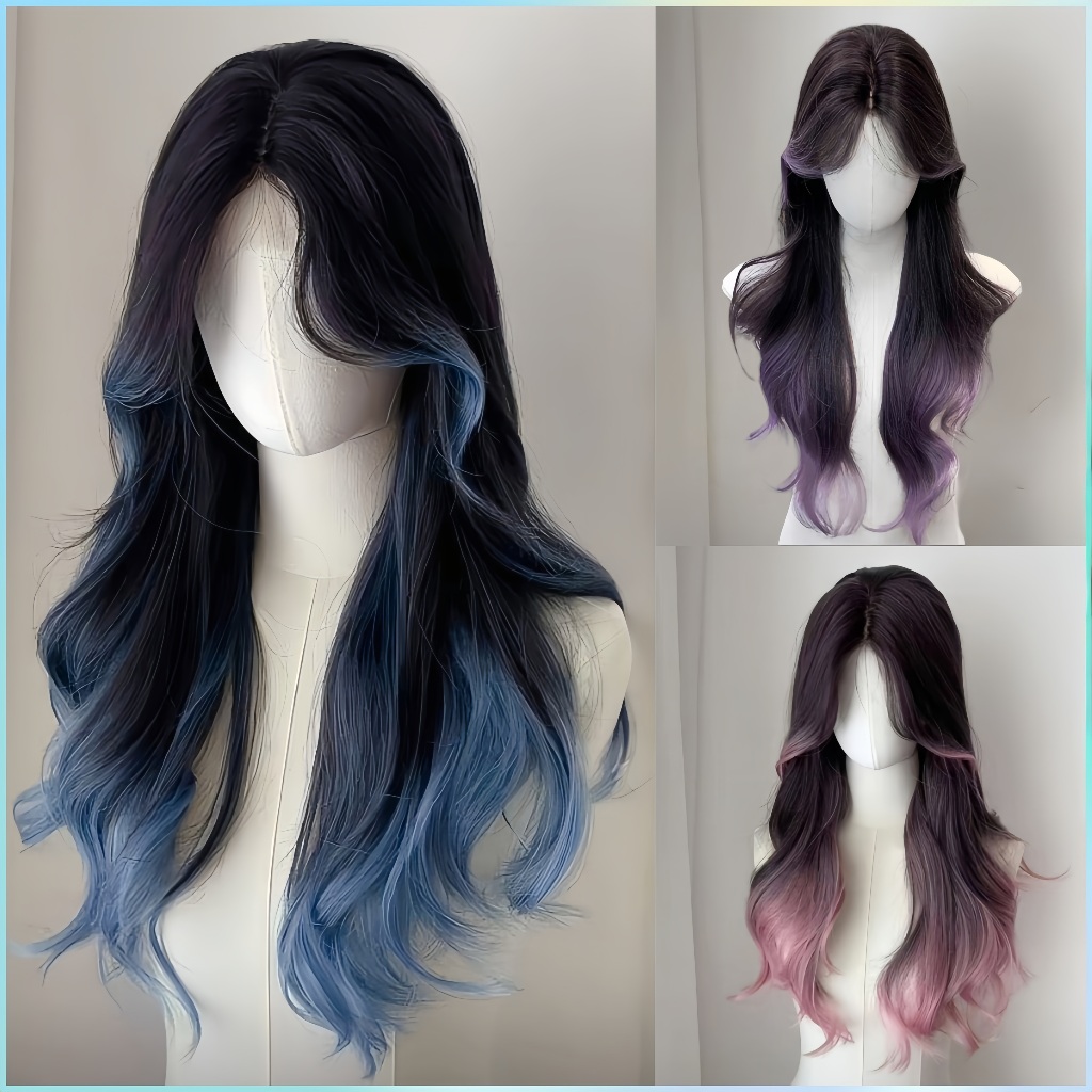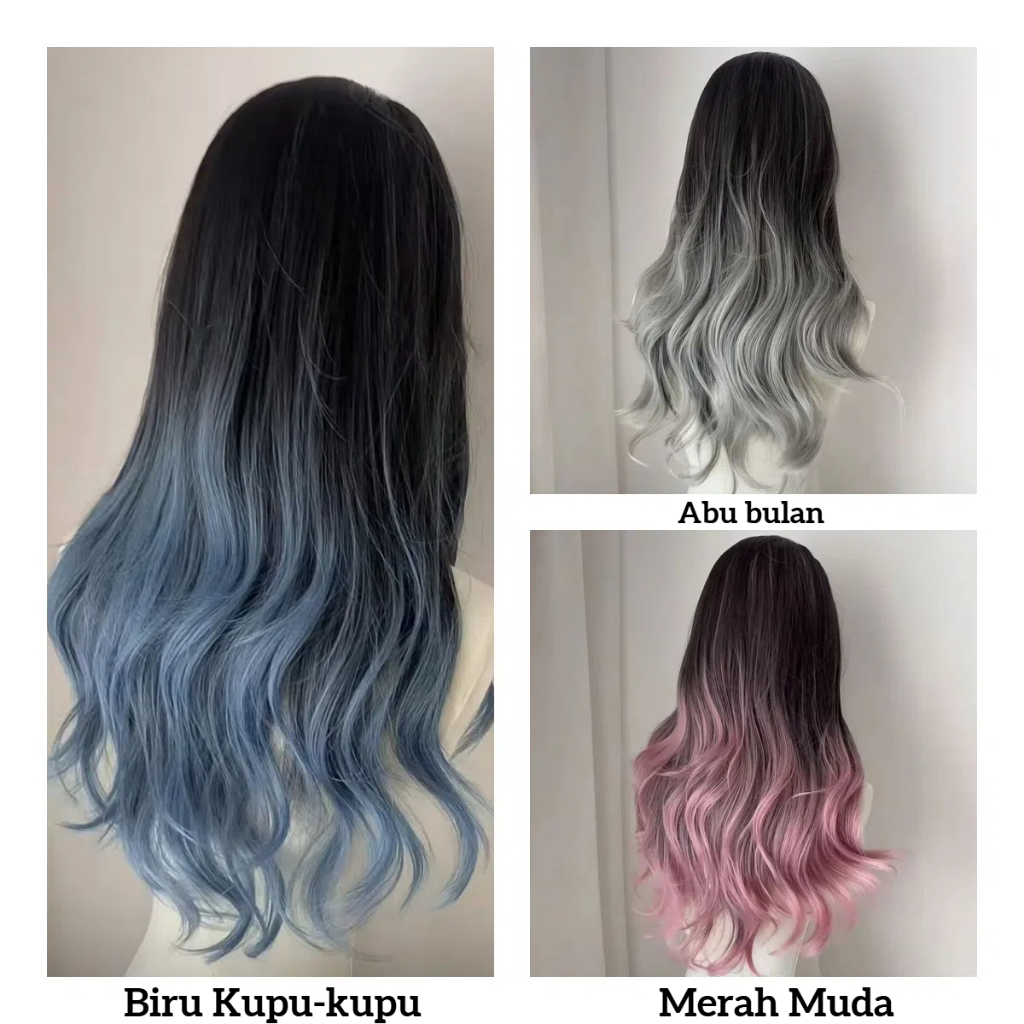 Wig Wanita Kupu-kupu Paris wig wanita rambut panjang curly wanita ombre wig wanita full kepala 65CM Wig Wanita Gradien Y