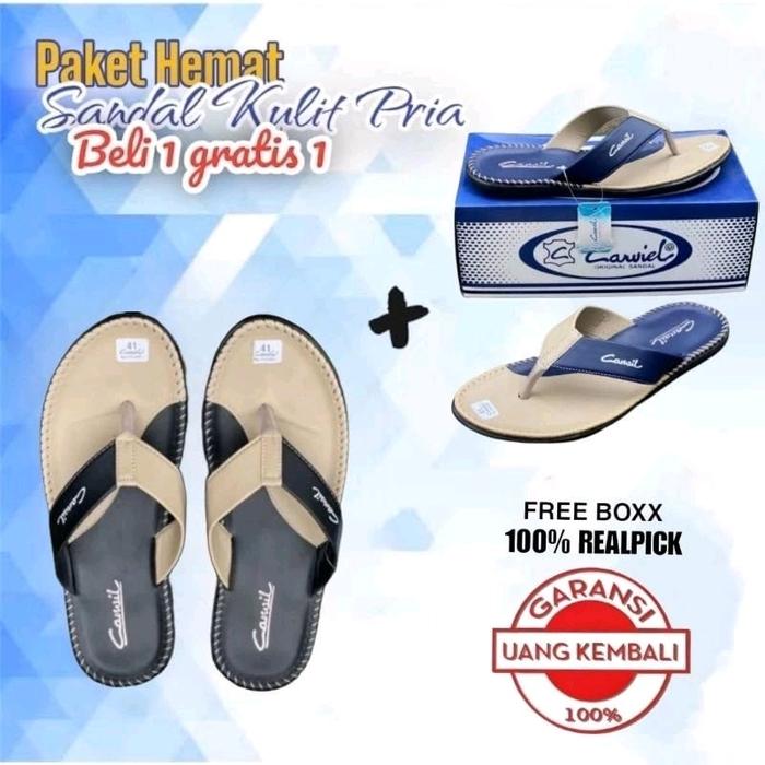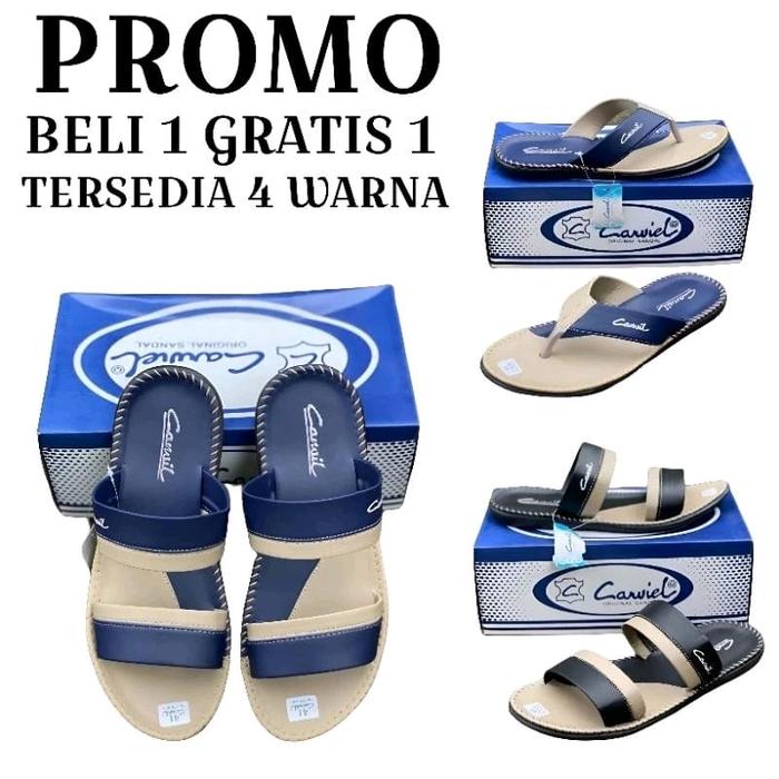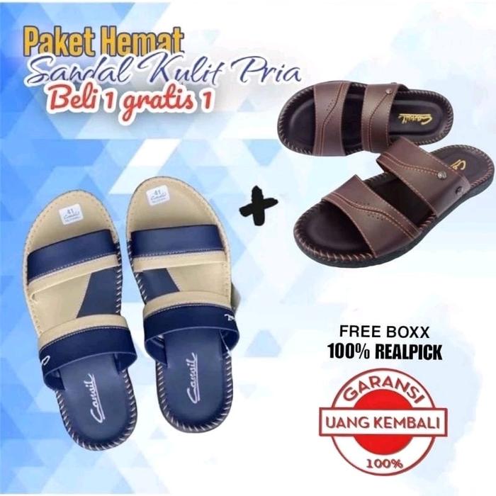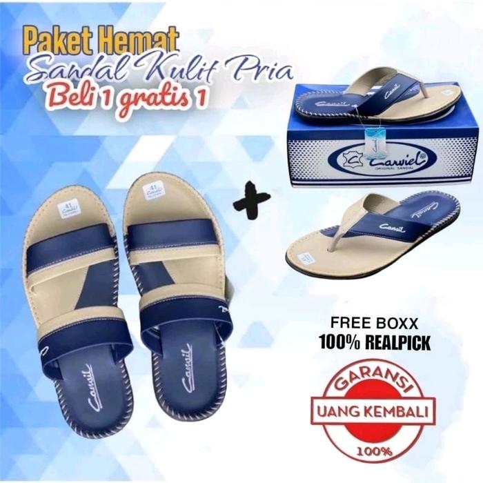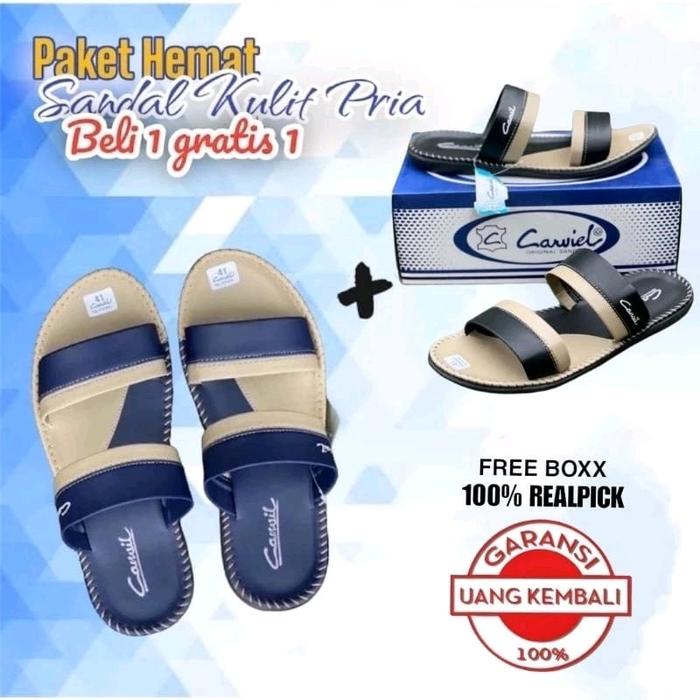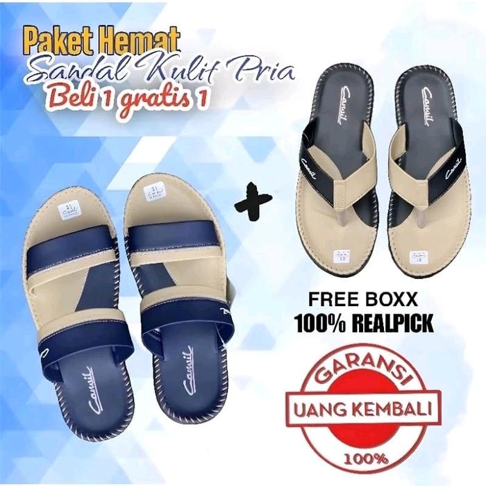[Star]Sandal Pria BELI 1 GRATIS 1 Jepit Kulit Sendal Slop Slide Slip On Casual Laki Laki Dewasa sandal carvil - BP NAVY