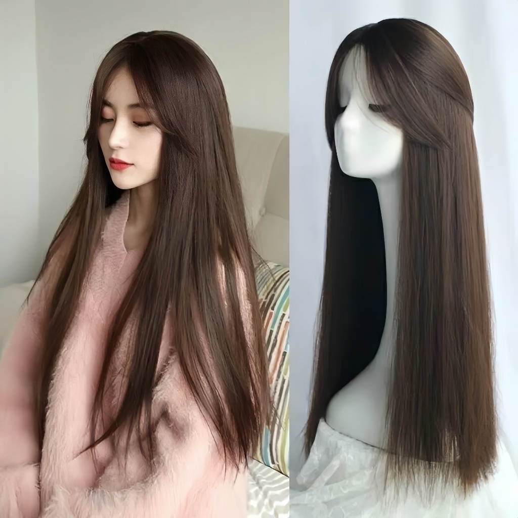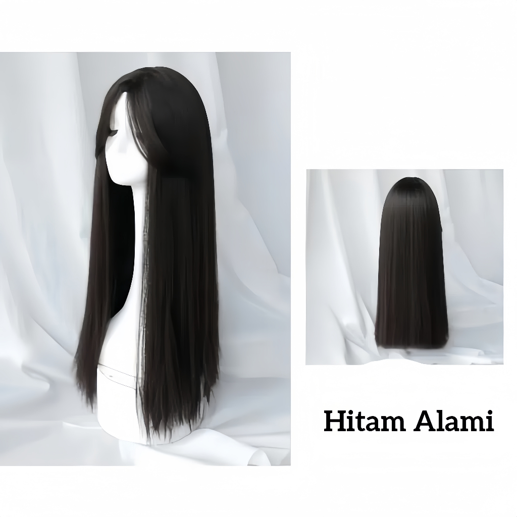 Wig Rambut Panjang Wanita, rambut palsu wanita full kepala 80CM, Rambut Lurus Setengah Panjang,Wig daily,Rambut palsu wa
