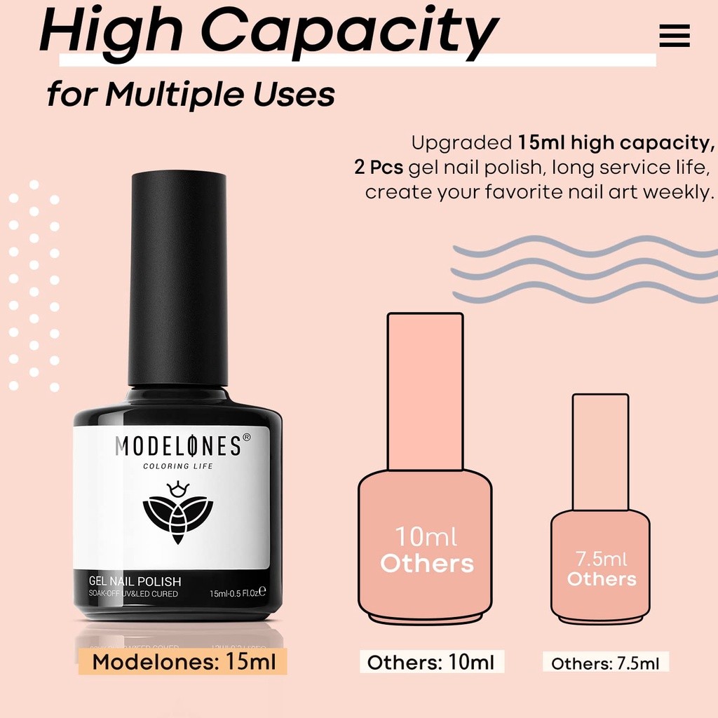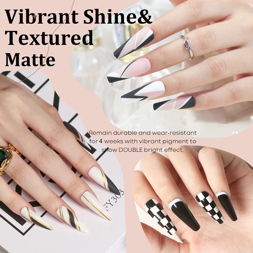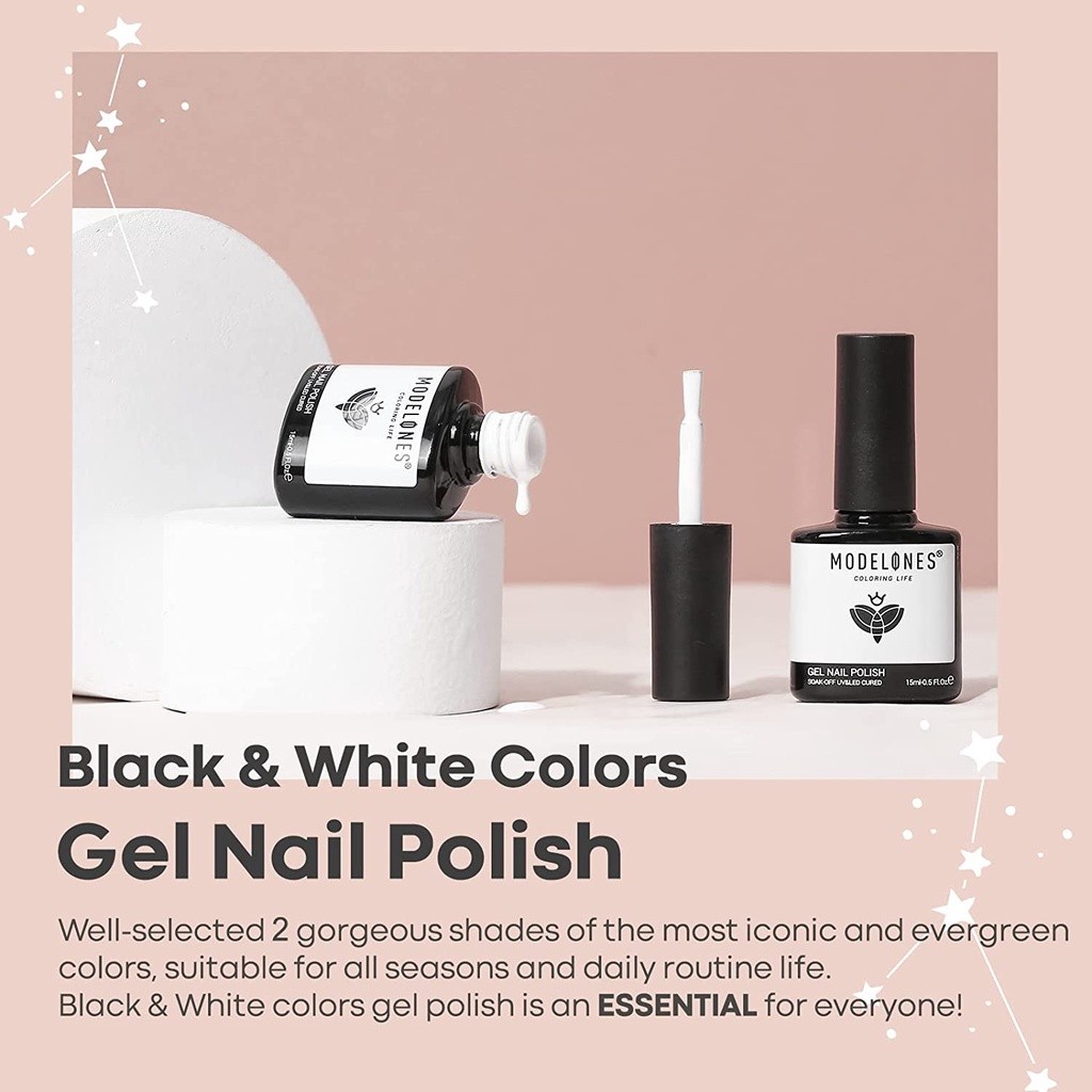 MODELONES Gel Nail Polish Set 2Pcs 15ml White Black Gel Polish Soak Off LED Fingernail Polish Long lasting Vegan Nail La