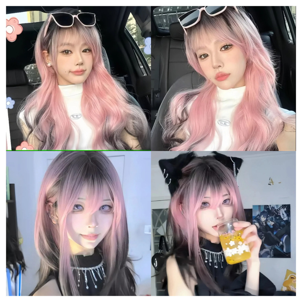 Wig Wanita Full Kepala/Korean Ombre Wig/Wig Daily Natural Wanita/Wig Rambut Panjang curly LAYER WAVE/Wig Premium Rambut