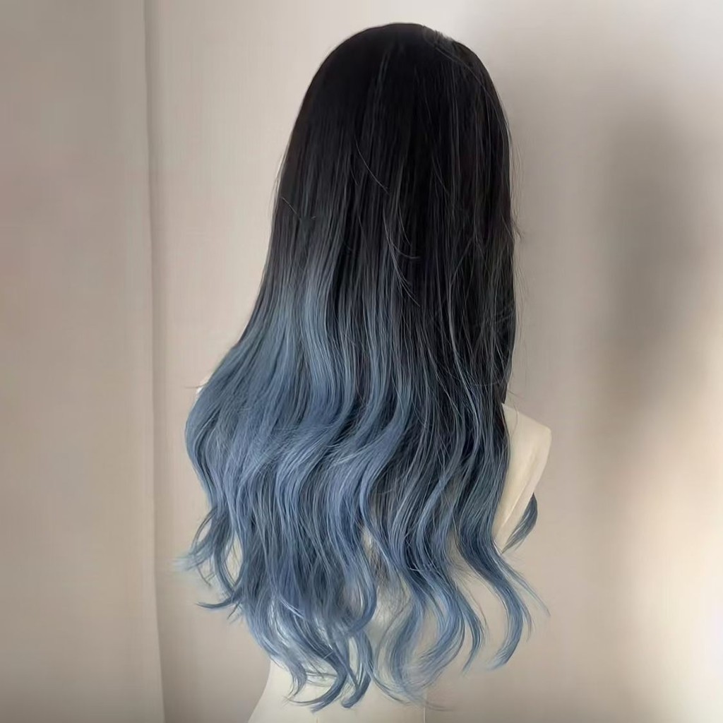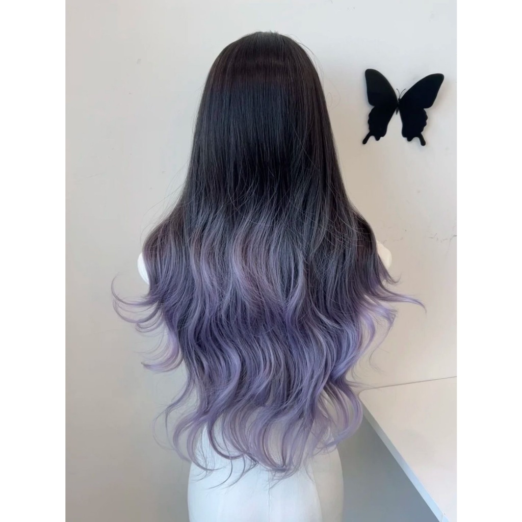 Wig butterfly cut Wig wanita full kepala 65cCM Wig rambut panjang Wig 2 warna Wig Wanita Gradien Yang Disorot Wig rambut
