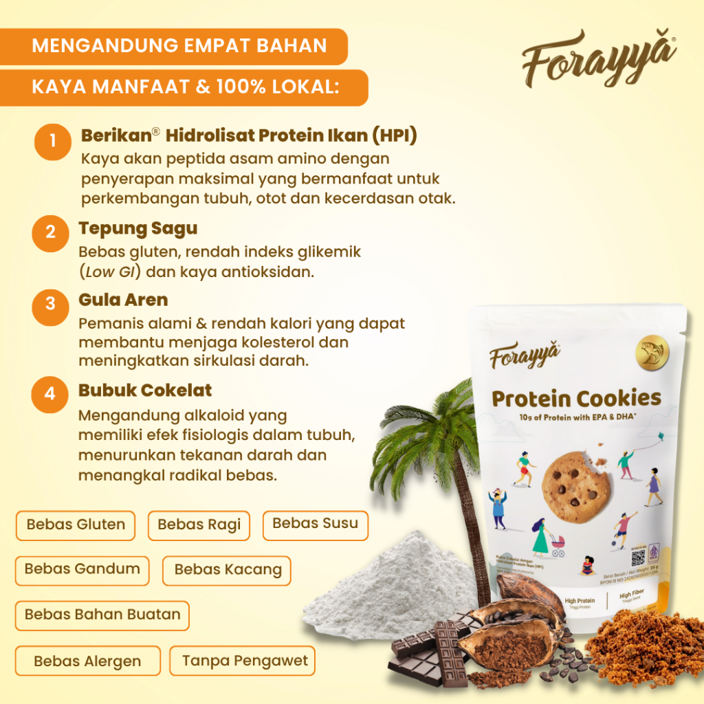 [Mall] 5 PCS PROTEIN COOKIES FORAYYA CEMILAN SEHAT GLUTEN FREE TINGGI PROTEIN 35G