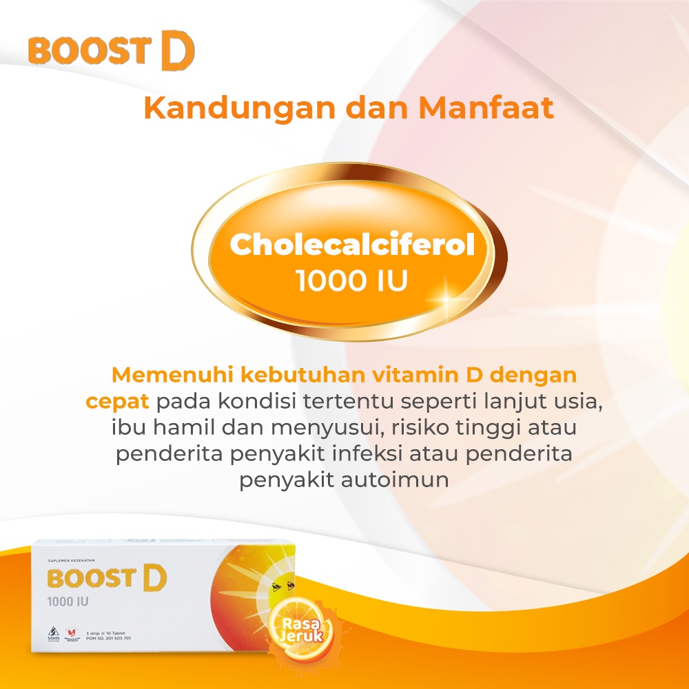 [Mall] BOOST D 1000 IU SUPLEMEN VITAMIN D 3 STRIP RASA JERUK 10 TABLET