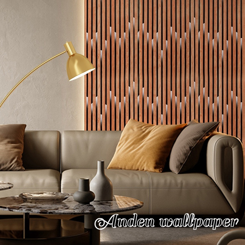 Wallpaper Dinding Terbaru Motif Kayu Salur 3D Light Panel Elegan 4 Meter x 45 cm Termurah Stiker Tembok Praktis Awet