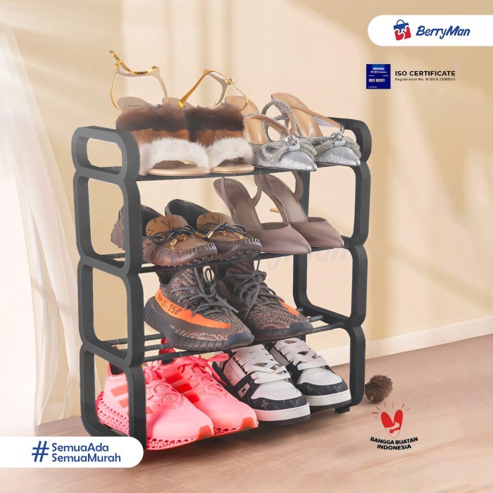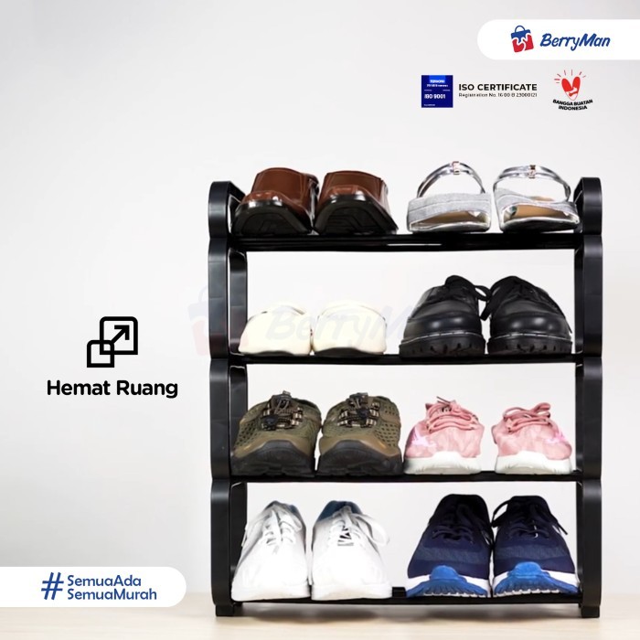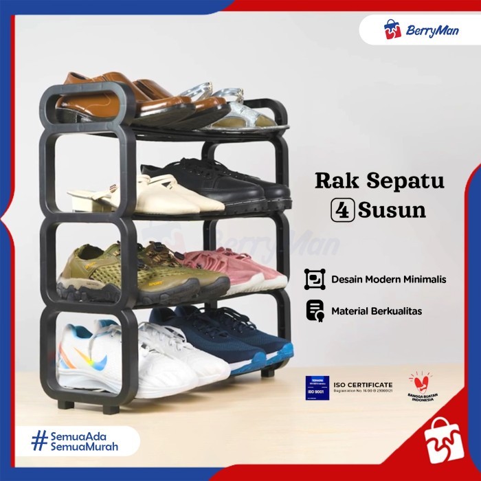RAK SEPATU SANDAL 4 SUSUN PLASTIK ASTER Minimalis Portable Bongkar Pasang Serbaguna