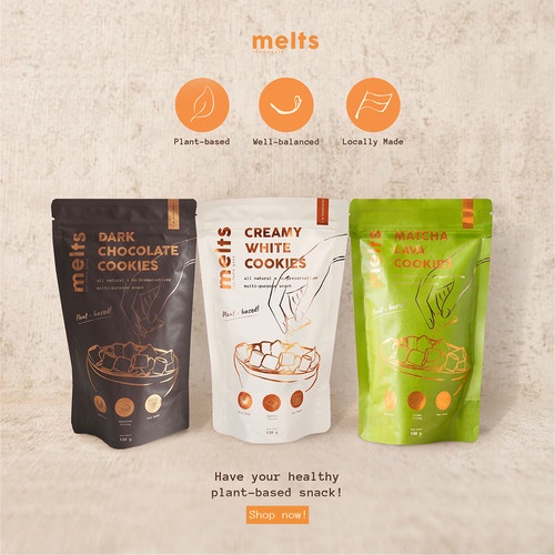 [Mall] MELTS DARK CHOCOLATE COOKIES - SNACK SEREAL SEHAT DIET COKLAT 120G/40G DARK CHOCO 120G