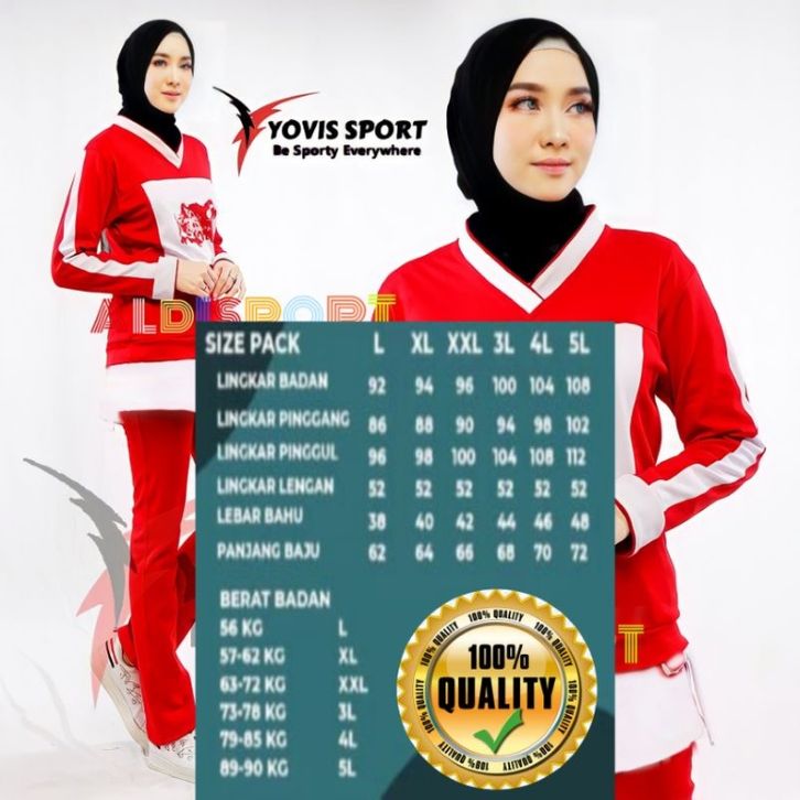 SETELAN MERAH PUTIH ONE SET BAJU CELANA OLAHRAGA PANJANG WANITA CEWEK SERAGAM SENAM IBU IBU BAHAN ELASTIS NYAMAN MURAH