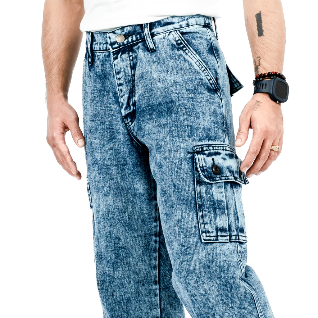 Gizmo Celana Cargo Jeans Pria Loose fit reguler gombrong Skena / Cargo pants Jeans Reguler Standard Denim washed Blue sandwash