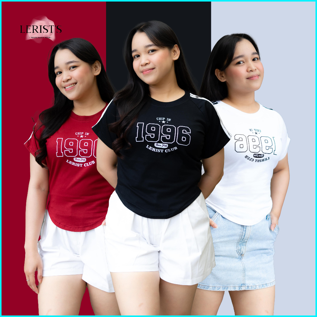 Crop Chip In 1996 Lerist Club Women - Tshirt Crop Round Neck Top Tee Kaos Atasan Wanita Cotton Combed 30s Premium T-shir