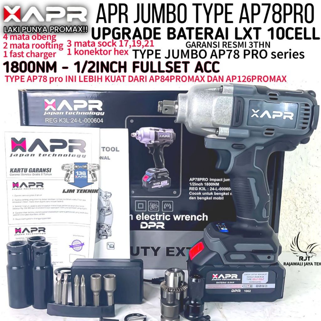 Raja impact wrench jumbo apr ap78 pro 1800nm impek kuat mobil motor mesin truck xapr GARANSI 5 TAHUN