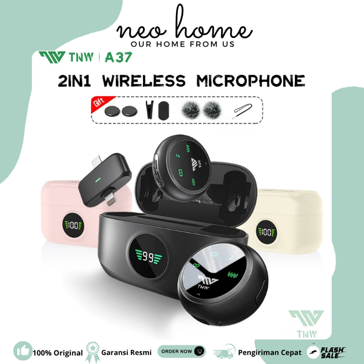 [Star] MIC WIRELESS CLIP ON TNW A37 MICROPHONE WIRELESS 2IN1 CLIP ON MIC MAGNETIC MIKROFON HP PLUG & PLAY DUAL LAVALIER