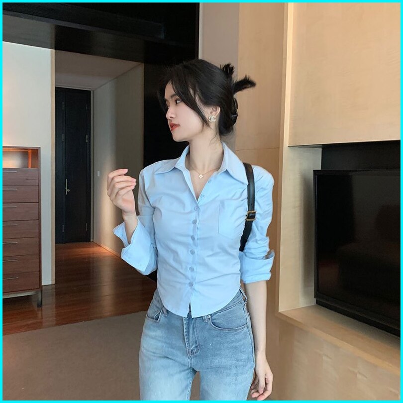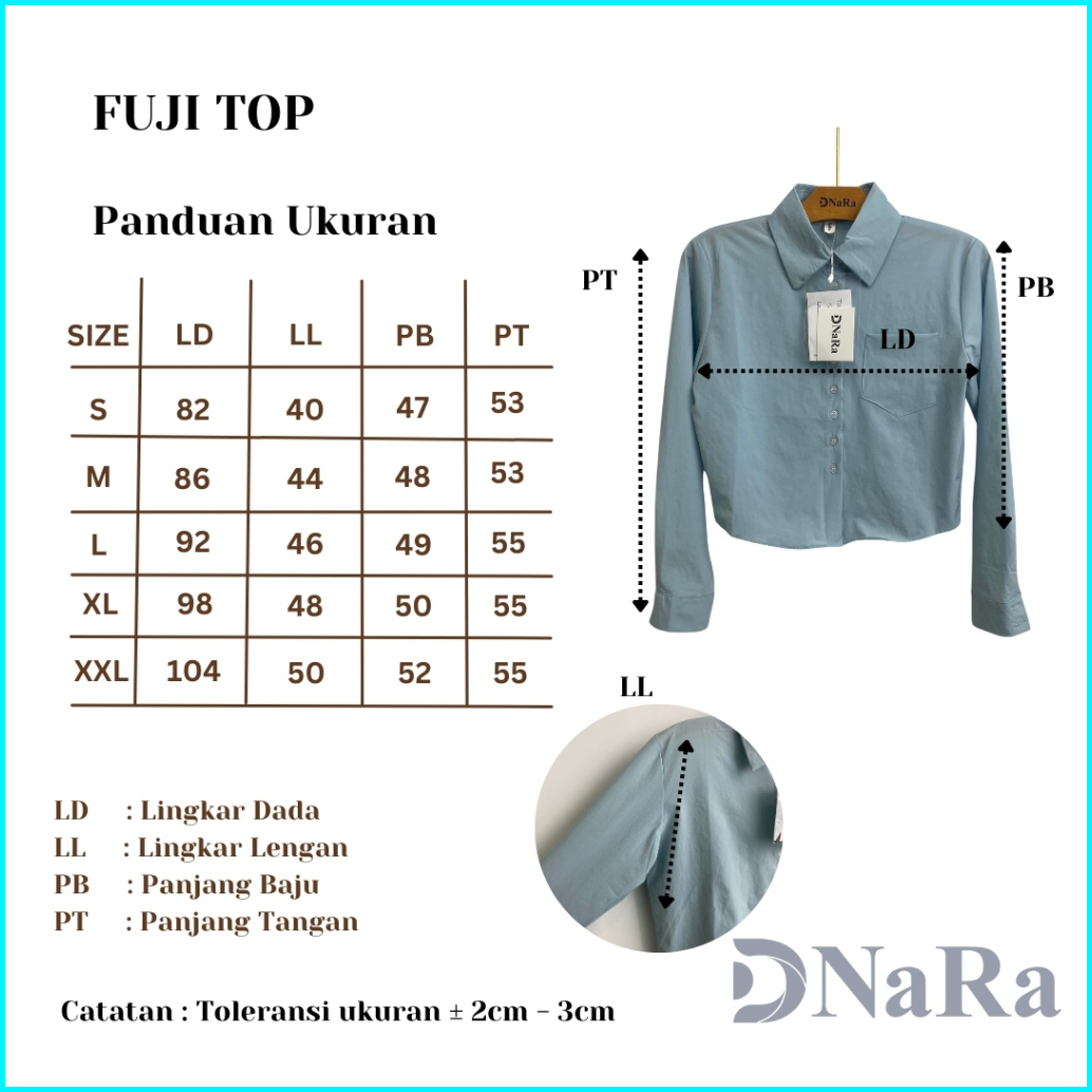 Dnara - Fuji Kemeja Crop Top Korean Style Kemeja Wanita Lengan Panjang Bahan Stretch Slim Fit