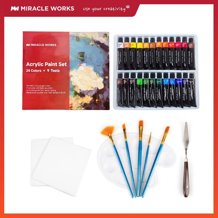 Acrylic Paint Set Cat Akrilik Set 12/24 Warna 12ml Lukis Kanvas