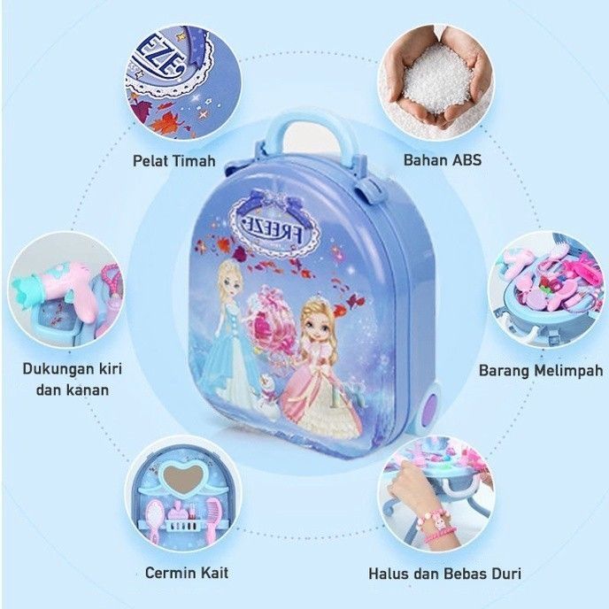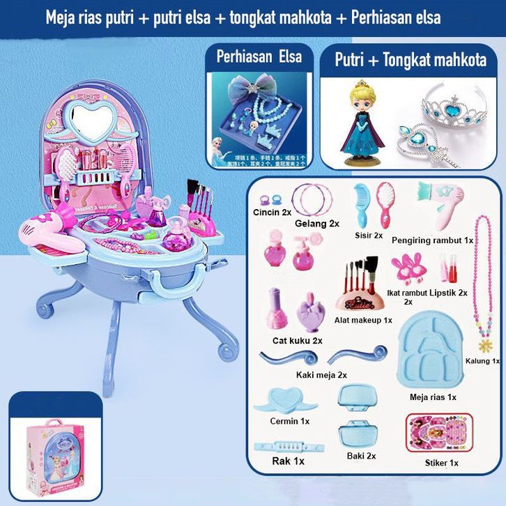 Mainan Riasan Make Up Untuk Anak Perempuan Meja Rias Koper Tas Tangan Permaianan Multifungsi Motif Disney Girls Frozen