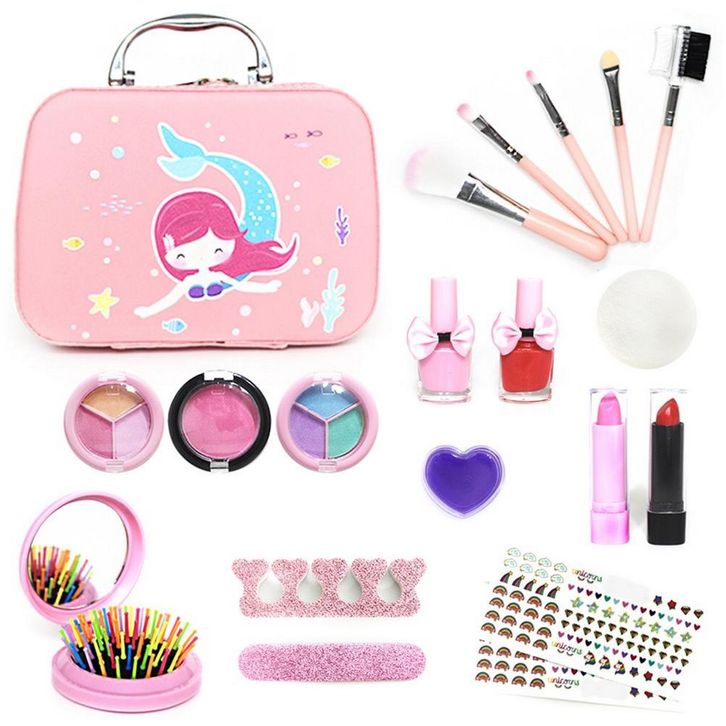 Set Mainan Make Up Anak Perempuan / Pretend Play Alat Dandan Tas Mermaid Kosmetik Anak Koper Rias Anak Peluk Kasih M282