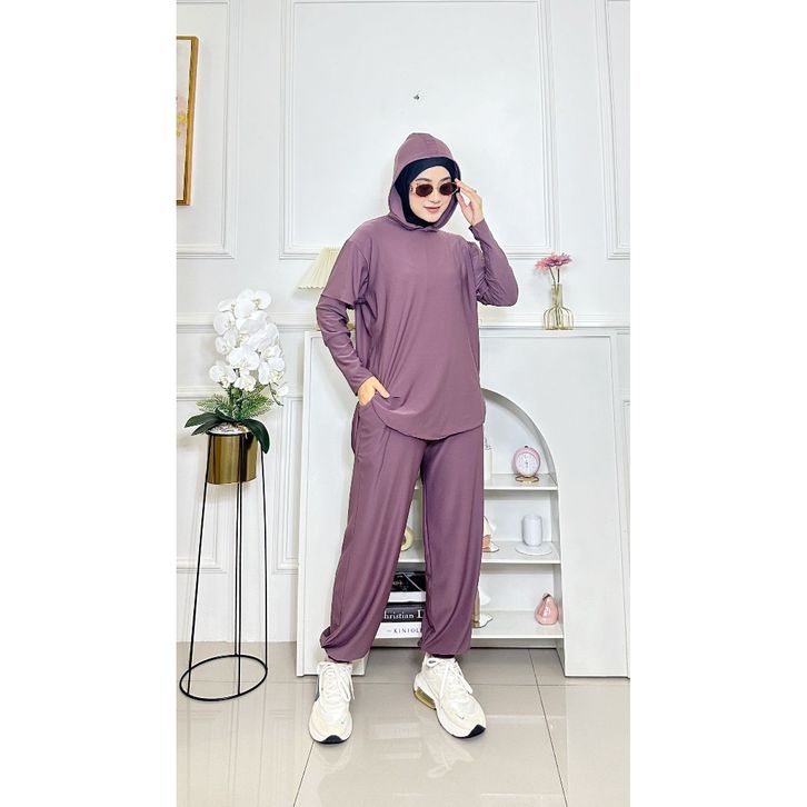 Baju Olahraga Wanita Muslim Jersey Premium One Set Hoodie Skirt Sporty Baju Badminton Senam Lari Bersepeda Terbaru