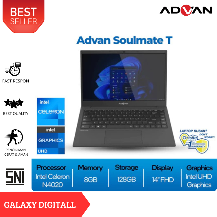 ADVAN LAPTOP SOULMATE T INTEL CELERON N4020 8GB EMMC 128GB WIN11 14 INCH HD MURAH TANPA DP ORIGINAL BEST SELLER