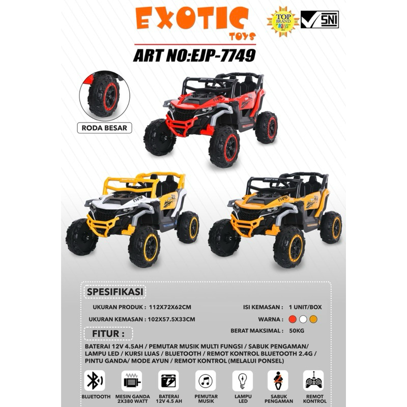 [Mall] Mobil Aki Anak Jumbo EJP 7749 EJP 7706+ Ban Eva Mobil anak Mobilan Anak Bisa Dinaiki Mobil Remote Control Besar A