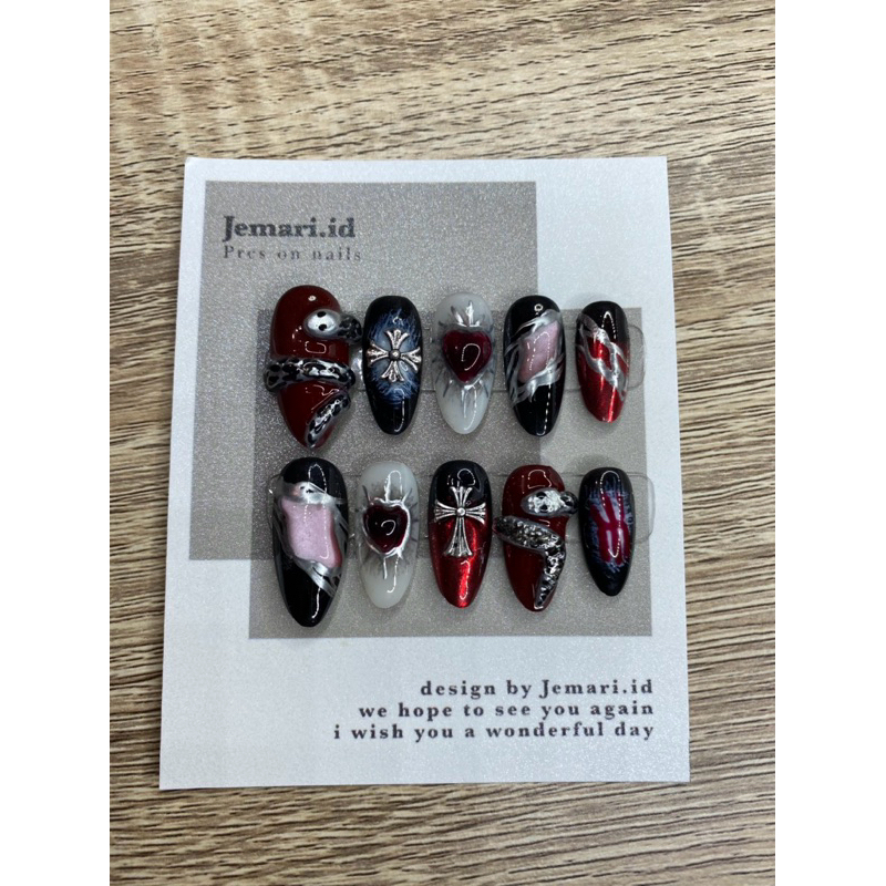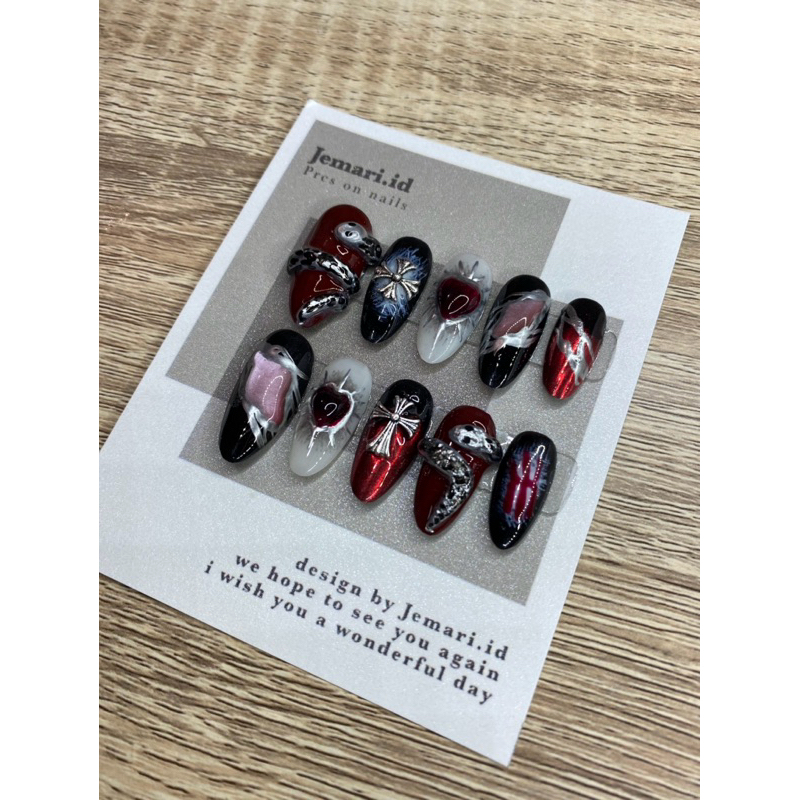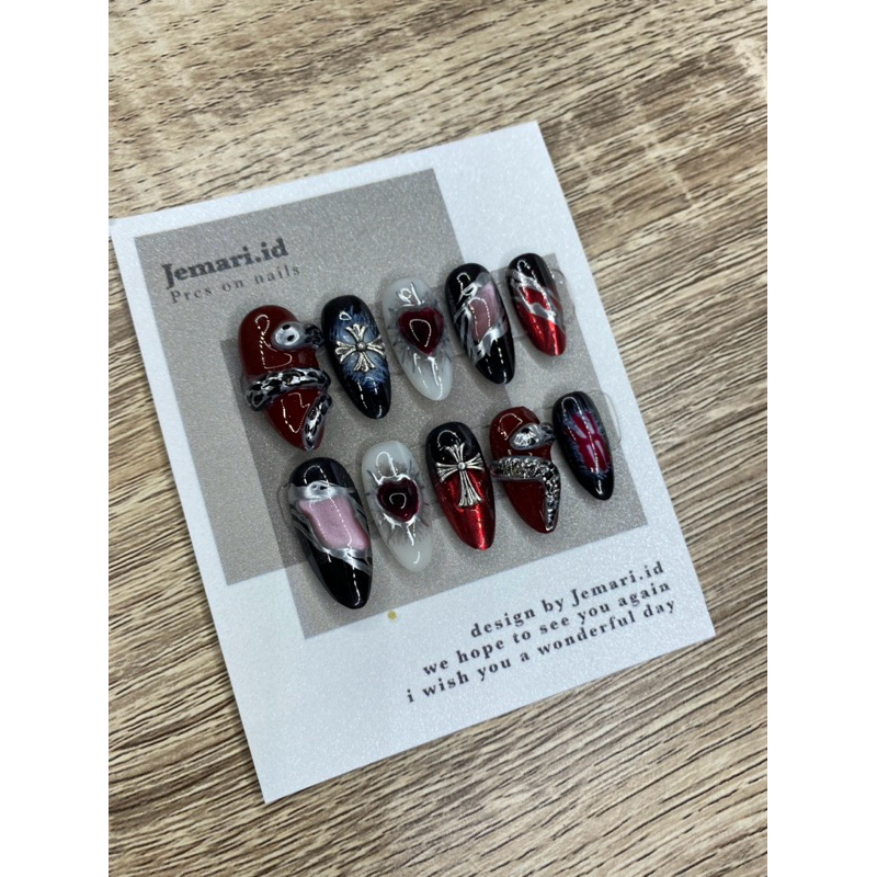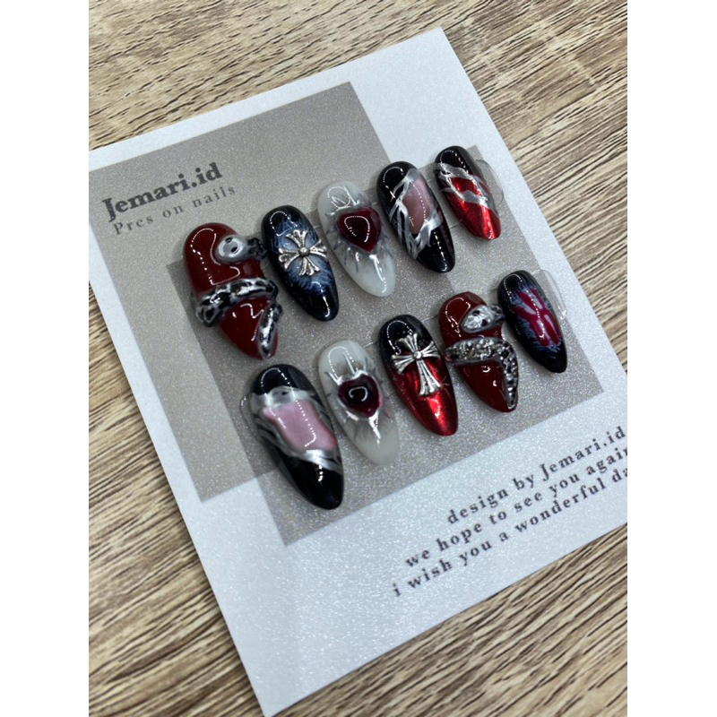 gothic nails, Aespa Nail / Y2K nail / medium almond pres on nails/ Dapat 12 kuku palsu / No Pre Order / Langsung Dikirim