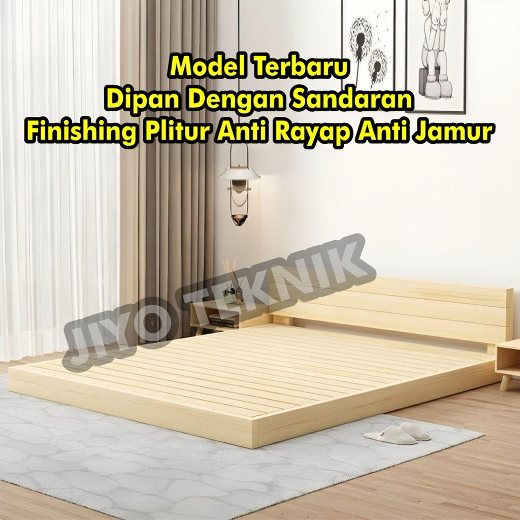Dipan kasur / tatakan kasur minimalis model terbaru dengan sandaran sudah ful finishing plitur / pernis anti jamur anti rayap