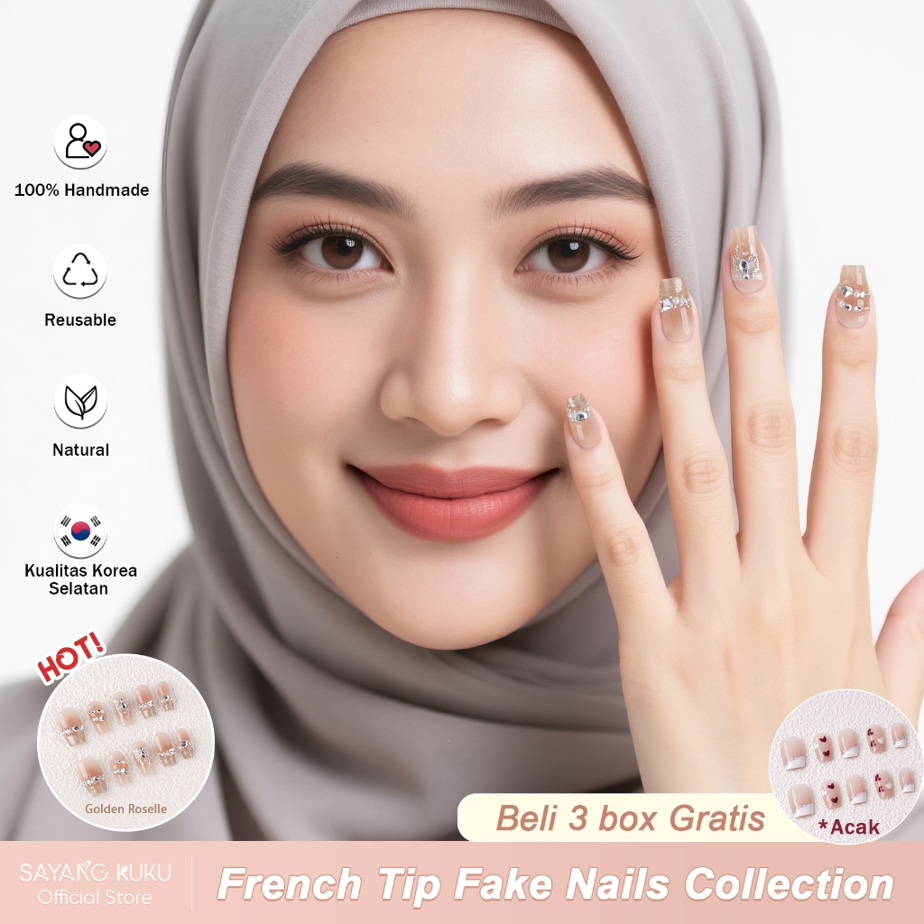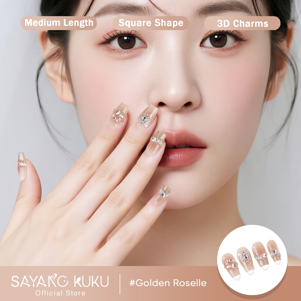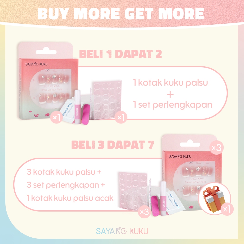 [Beli 3 dapat 7] Sayang Kuku x Miniso Kuku Palsu 3D Embellished Series- 10pcs DIY Instant Nail Art, Reusable Handmade Pr
