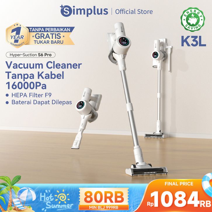Simplus Penyedot Debu Tanpa Kabel 16000Pa Vacuum Cleaner Cordless Filter HEPA F9 Layar Elektronik