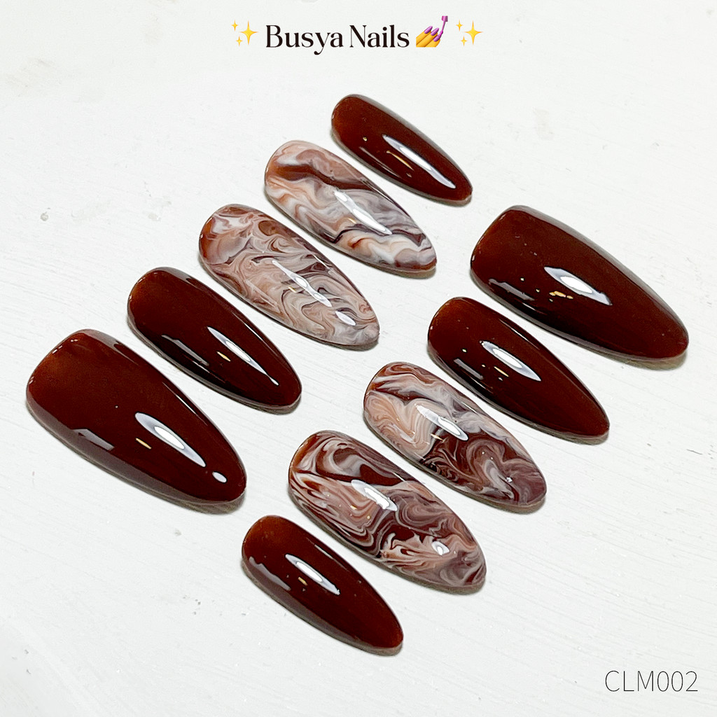 Busya Nails - Cafe Latte Marble Coffee Brown Pressed On Nails Gel Free Toolkit Kuku Palsu