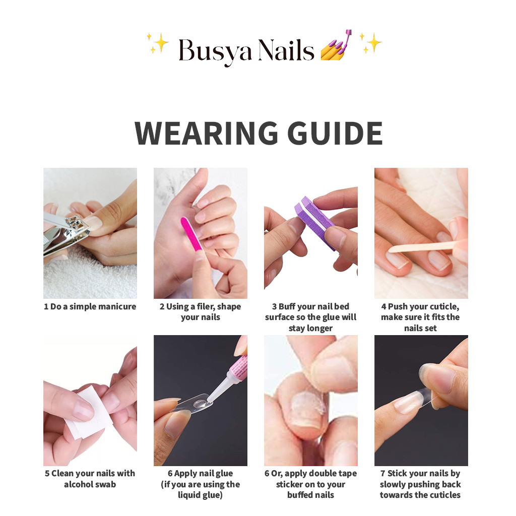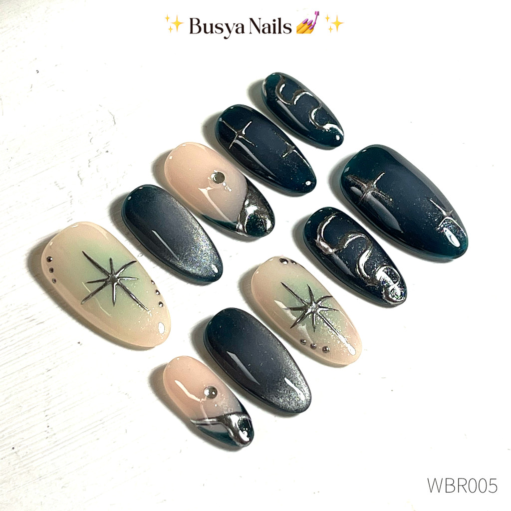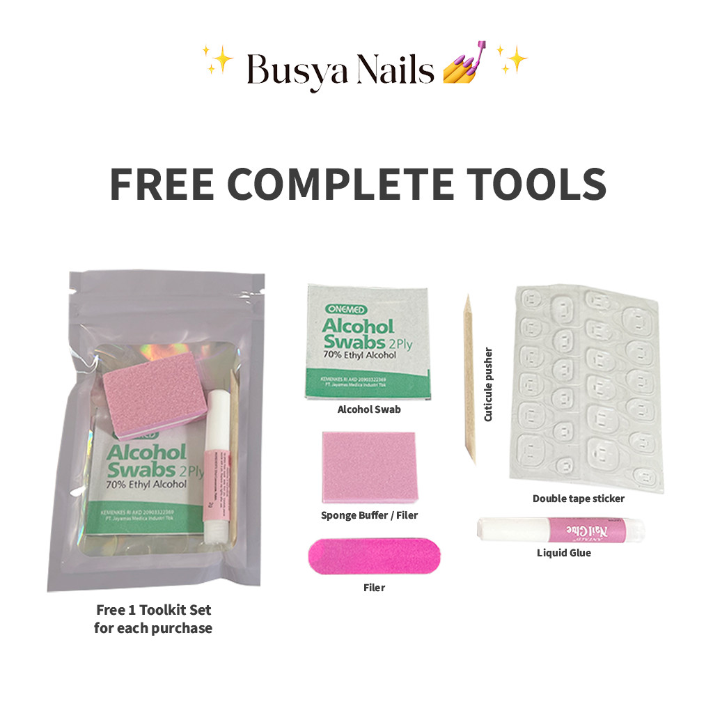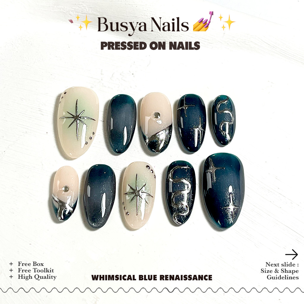 Busya Nails - Whimsical Blue Renaissance Pressed On Nails Kuku Palsu Free Lem Tools