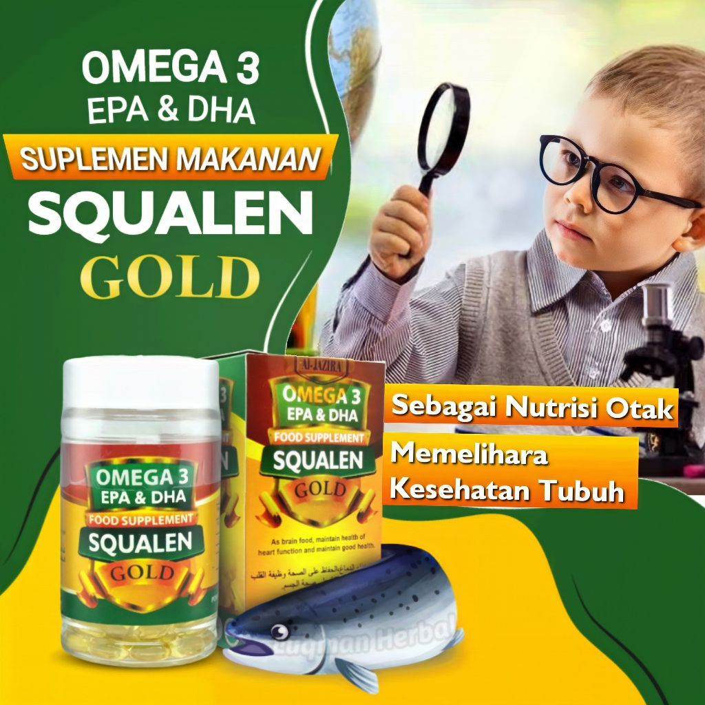 Omega 3 Squalen Gold ALJAZIRA Minyak Ikan plus Fish Oil Vitamin Otak Anak - 70 softgel