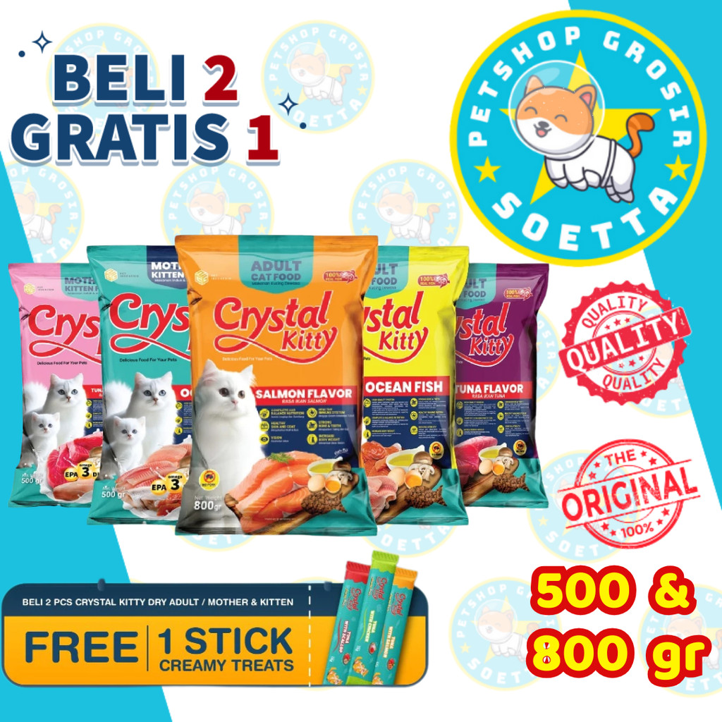 Makanan Kucing Crystal Kitty Cat Food Adult 800gr & Kitten 500gr
