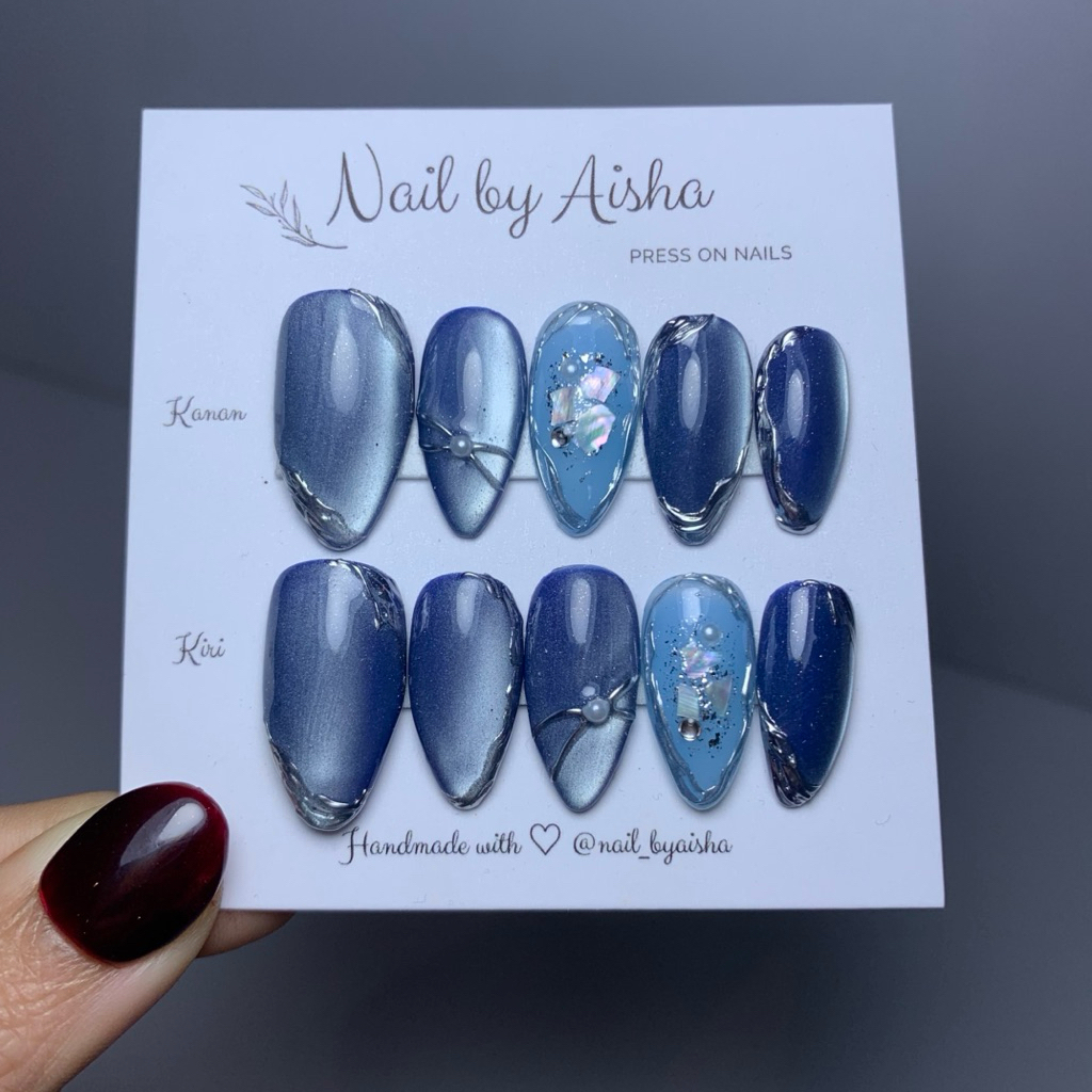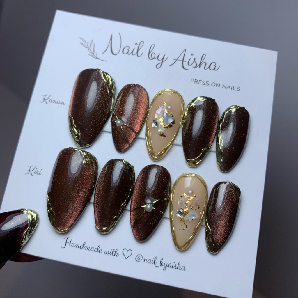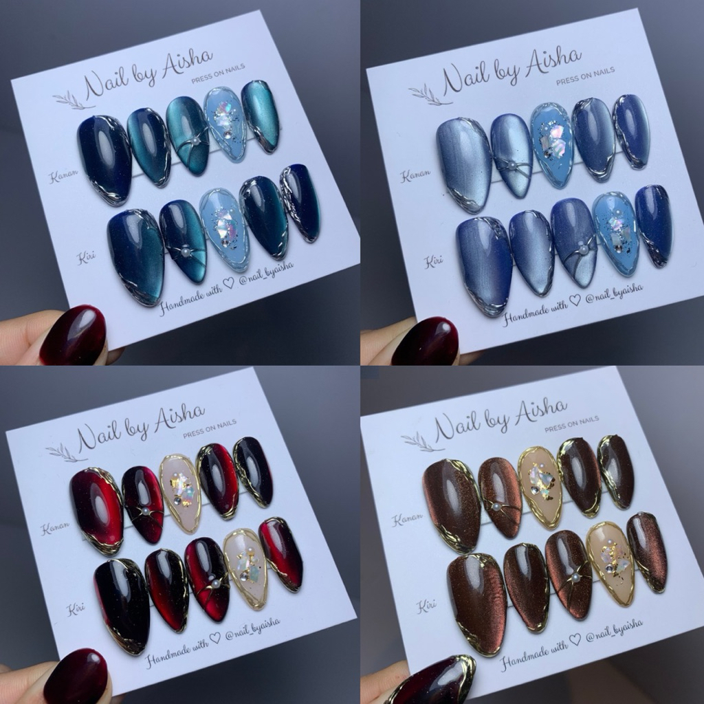 kuku palsu press on nails coklat mahogany / emerald blue / custom warna