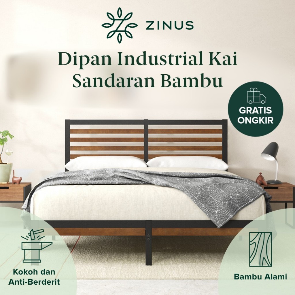 Dipan Tempat Tidur Zinus Kai Ranjang Besi Industrial DIY Bed In a Box