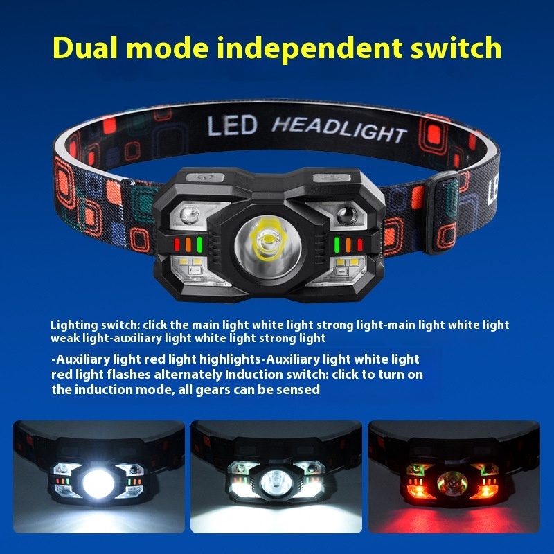 Lampu Kepala LED Super Terang dengan Sakelar Sensor Senter Berkemah Senter Kepala Super Terang