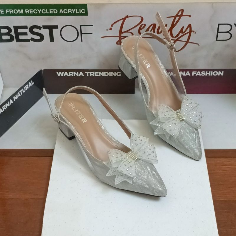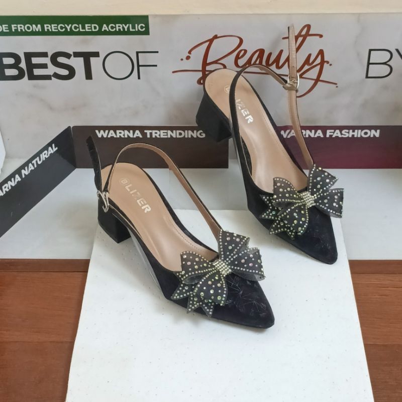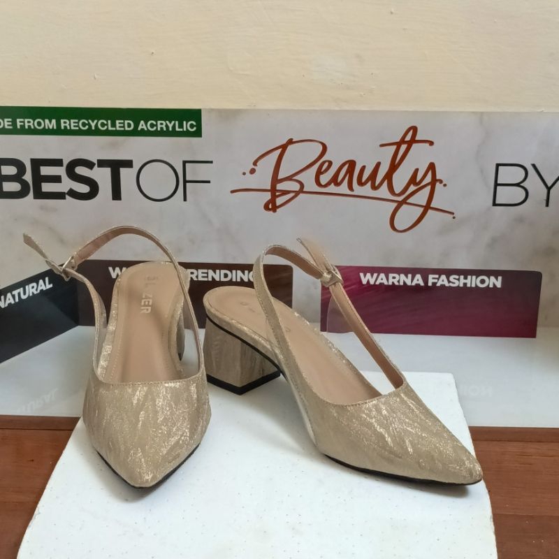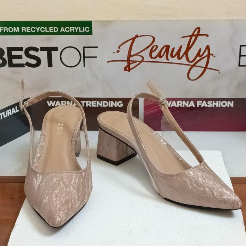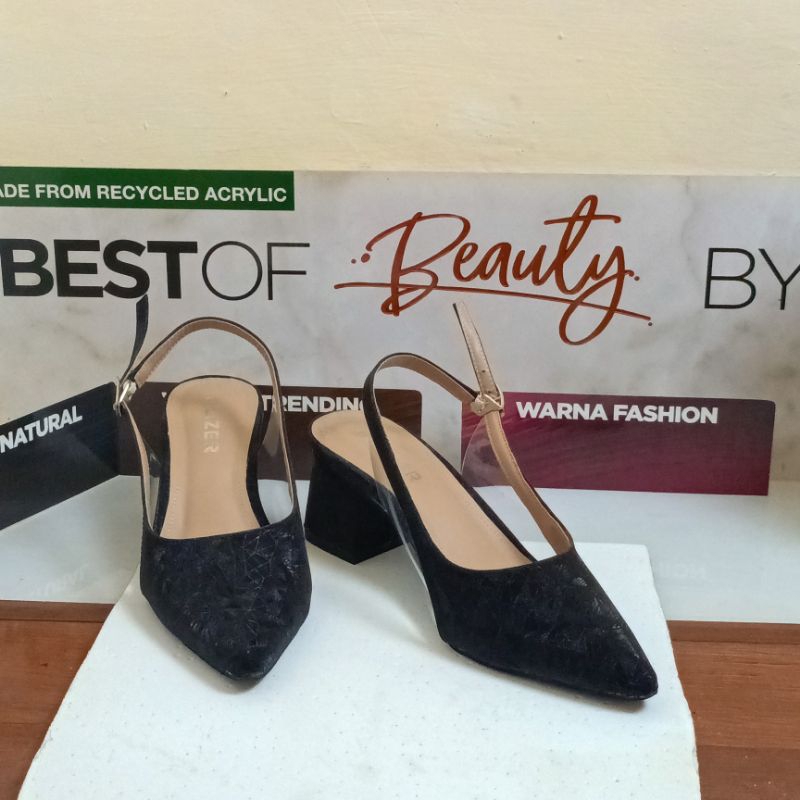 ZER Nisa - Sepatu Heels Wanita Hak Tahu 5cm Tali Slingback Pita Model Baru Kekinian - 09114