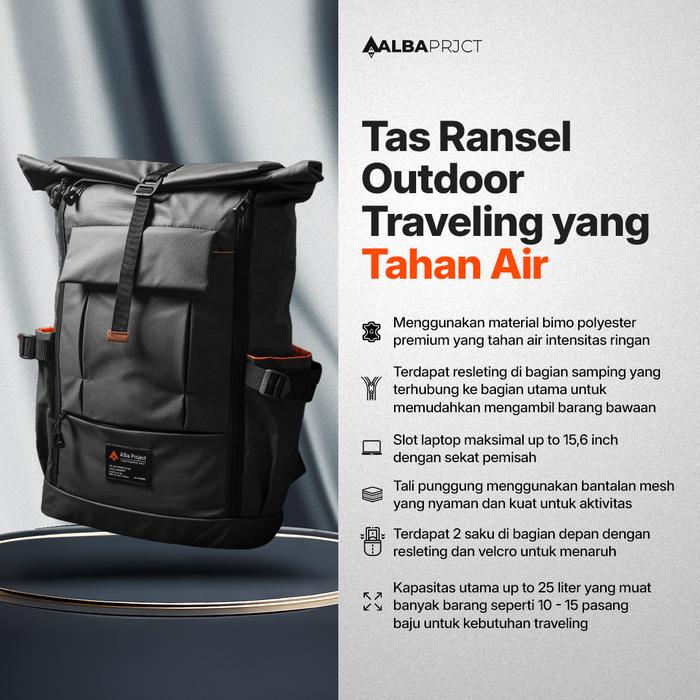 Alba Project - Backpack Vegas - Tas Ransel Laptop Kerja Sekolah Pria Wanita Waterproof Traveling Hiking Gunung - Hitam