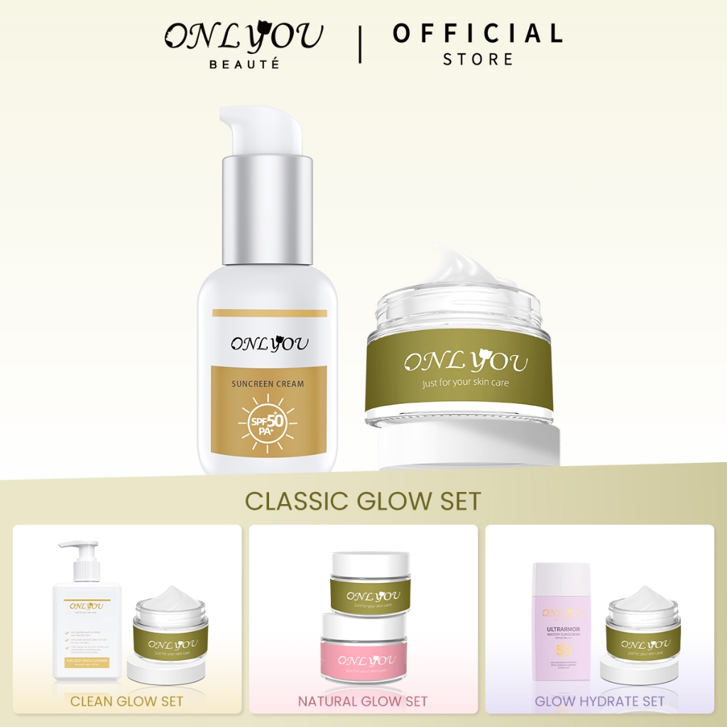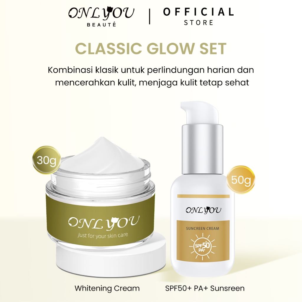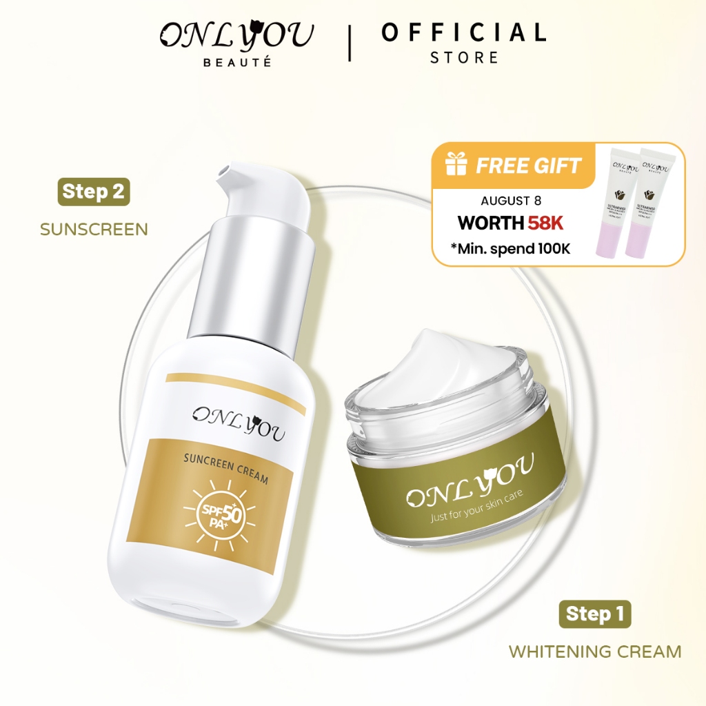 ONLYOU 2pcs Paket SKINCARE PAKTE Moisturizer cream Whitening & Fade Dark Spot Cream 30G & Sunscreen Cream SPF50+ PA+ wajah UV sunblock 50ML Amino Facial Wash Acne Care Cream Tone Up Cream