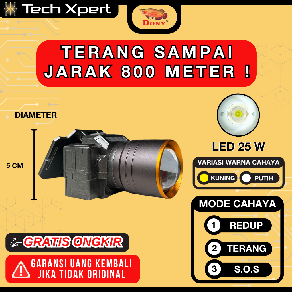 SENTER KEPALA LED DONY 25 WATT KL-172 "ZOOM MEKANIK" ORI ANTI AIR TAHAN LAMA OUTDOOR UKURAN SEDANG