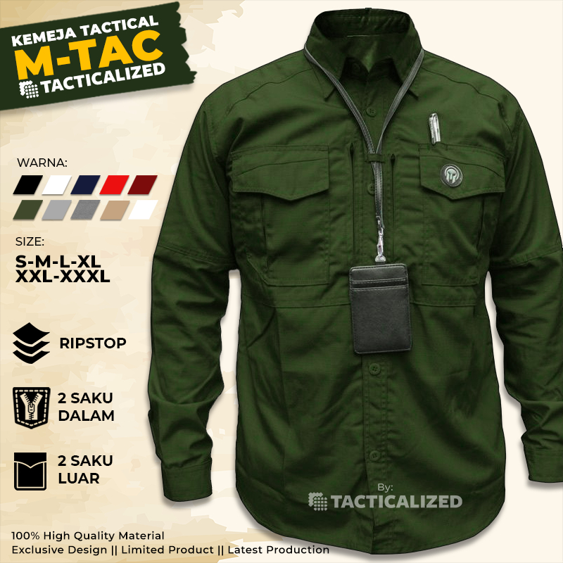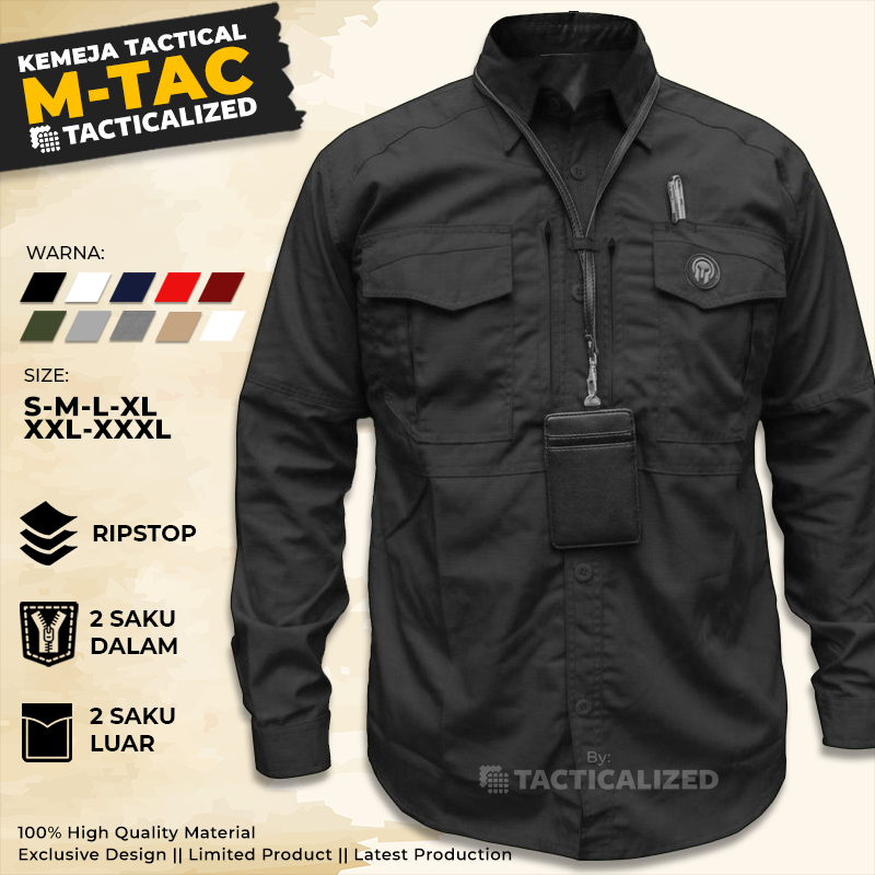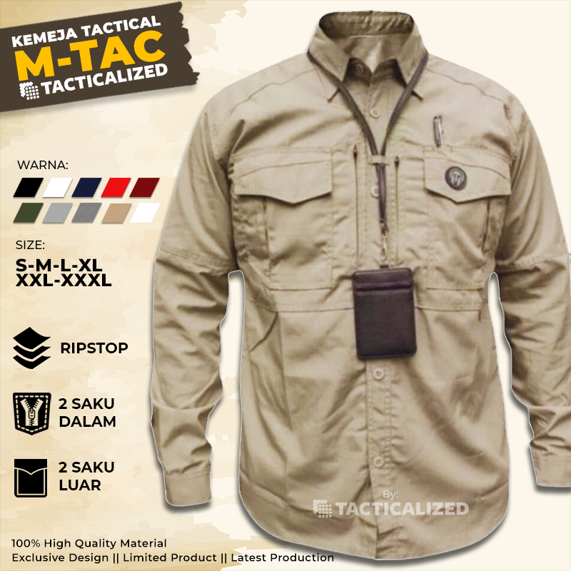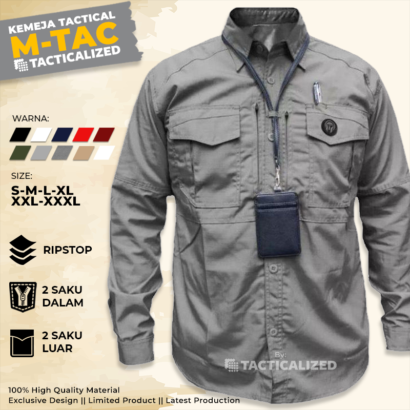 Kemeja Tactical Pria Lengan Panjang M-TAC RIPSTOP Baju Kerja Lapangan
