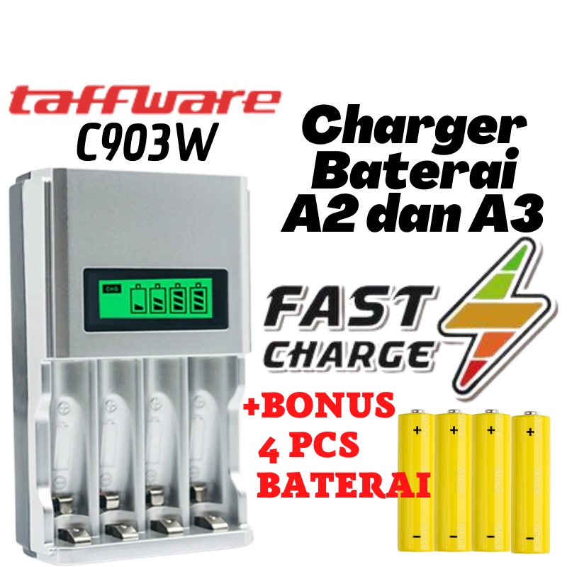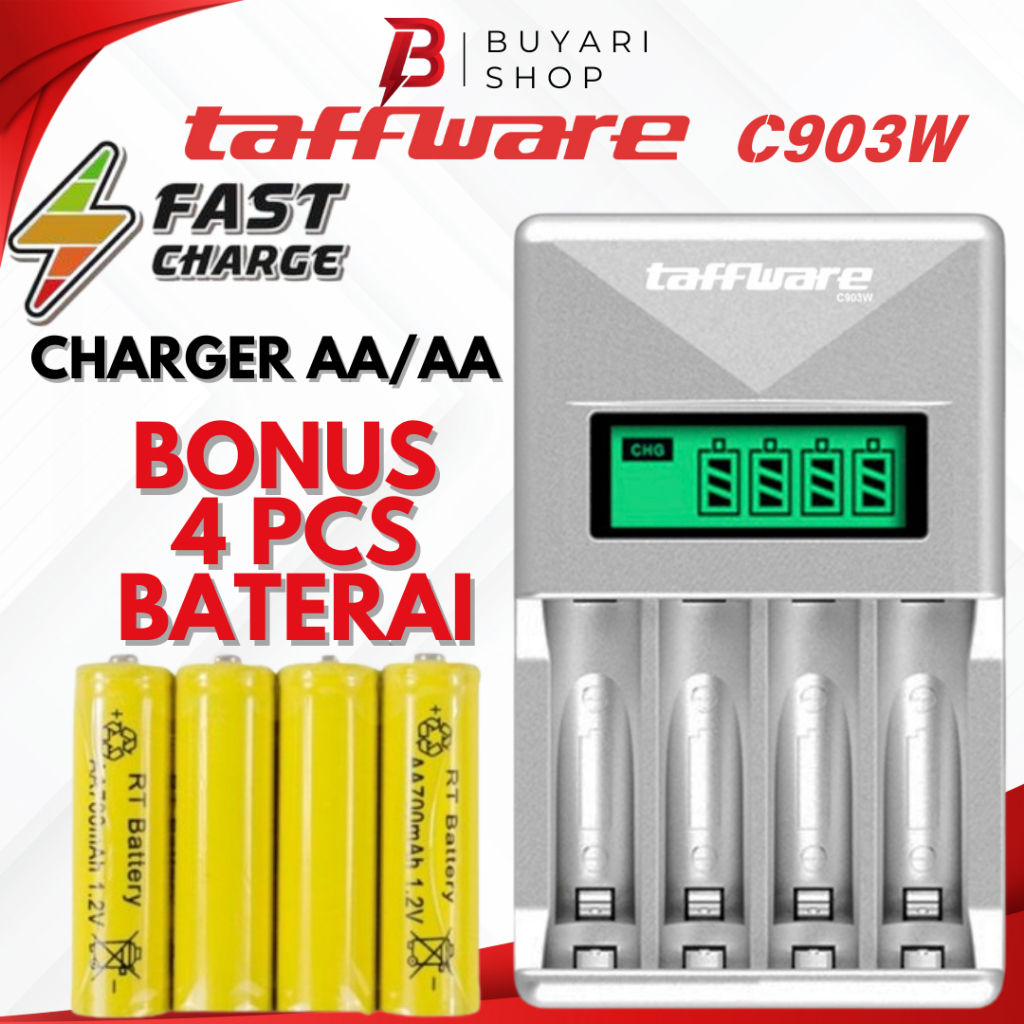 [] CHARGER BATRE AA AAA TAFFWARE C903W 4 SLOT CHARGER AA AAA FAST CHARGING MOBIL REMOTE CONTROL CASAN BATRE AA A