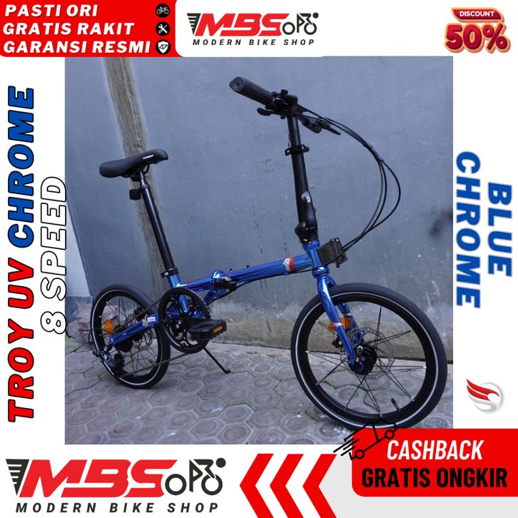 ELEMENT TROY 8 SPEED UV CHROME SEPEDA LIPAT 16 INCH DEWASA REMAJA FRAME STEEL REM MEKANIK
