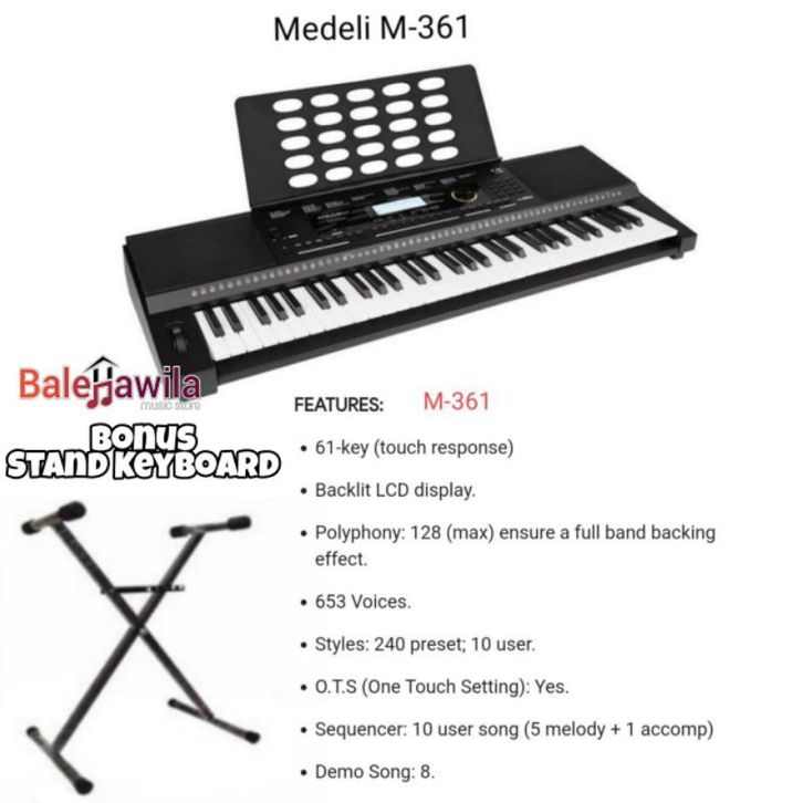 Keyboard Medeli M361 M-361 M 361 Keyboard 61 Key ORIGINAL Bonus Stand keyboard